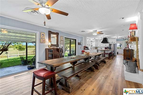 Nestled amidst the natural beauty of 217+/- sprawling acres, this charming 6-bedroom, 3.5 bathroom house is a true haven for those seeking a serene and spacious retreat. With its picturesque location and timeless design, this property offers a perfect blend of rustic elegance and modern comfort. A long, paved winding driveway leads you to the front of the house, creating a sense of anticipation as you approach your new home. Upon entering the home, you are greeted by a wonderful foyer. The main living area features a spacious open concept design, connecting the living room and dining room. Large Bay windows flood the space with natural light and offer breathtaking views of the surrounding landscape. The charming, newly remodeled kitchen boasts quartz countertops, hardwood cabinetry and a working indoor grill. A large island provides additional counter space and a casual dining area. The house features six well-appointed bedrooms, and three and a half bathrooms, each designed with comfort and relaxation in mind. The charm of this property extends outdoors, where you'll find a sprawling covered patio with ample seating, perfect for al fresco dining and entertaining. Beyond the patio, the property offers countless opportunities for outdoor activities, hiking, horseback riding, and exploring the vast acreage. The property includes a 4 acre lake, perfect for fishing or simply enjoying the view. Come experience the tranquility and beauty of a private estate while enjoying the comforts of a thoughtfully designed home. It's a place where nature, luxury, and serenity come together to create an unforgettable living experience.
