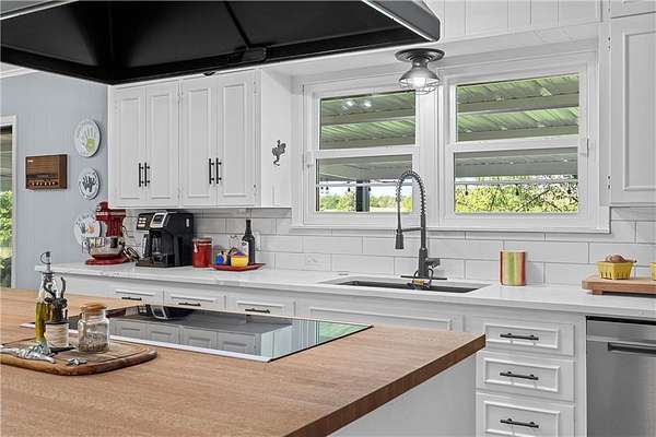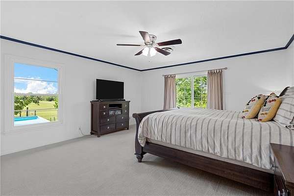 Nestled amidst the natural beauty of sprawling acres, this charming 6-bedroom, 3.5 bathroom house is a true haven for those seeking a serene and spacious retreat. With its picturesque location and timeless design, this property offers a perfect blend of rustic elegance and modern comfort. A long, paved winding driveway leads you to the front of the house, creating a sense of anticipation as you approach your new home. Upon entering the home, you are greeted by a wonderful foyer. The main living area features a spacious open concept design, connecting the living room and dining room. Large Bay windows flood the space with natural light and offer breathtaking views of the surrounding landscape. The charming, newly remodeled kitchen boasts quartz countertops, hardwood cabinetry and a working indoor grill. A large island provides additional counter space and a casual dining area. The house features six well-appointed bedrooms, and three and a half bathrooms, each designed with comfort and relaxation in mind. The charm of this property extends outdoors, where you'll find a sprawling covered patio with ample seating, perfect for al fresco dining and entertaining. Beyond the patio, the property offers countless opportunities for outdoor activities, hiking, horseback riding, and exploring the vast acreage. The property includes a 4 acre lake, perfect for fishing or simply enjoying the view. Come experience the tranquility and beauty of a private estate while enjoying the comforts of a thoughtfully designed home. It's a place where nature, luxury, and serenity come together to create an unforgettable living experience.