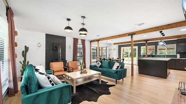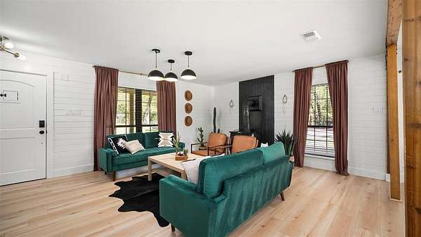 Stop taking vacations - start living in one! Don’t miss this opportunity to own this fully updated Modern Farmhouse home, set on 6.78 acres and featuring an incredible backyard oasis with a private pond. Currently operating as an active Airbnb and available for sale fully furnished or unfurnished, this home offers the perfect blend of luxury, privacy, and versatility. Perfect for investors seeking a turnkey Airbnb or for families looking for a move-in ready property, this 2,209 SF home offers 4 bedrooms, 2.5 stunning bathrooms, a 6-car garage, a 2-car carport, and a workshop. Located just about an hour from DFW, it provides convenient access to city amenities while offering the peace and privacy of country living. Fully renovated from top to bottom, this home showcases an exceptional blend of elegance, comfort, and modern sophistication, with major upgrades including plumbing and electrical for added peace of mind. Step inside to a bright, open-concept layout filled with natural light, where the main living area flows seamlessly into a stylish dining space and a gourmet kitchen featuring stainless steel appliances, quartz countertops, and designer lighting, ideal for both everyday living and entertaining. The primary suite offers a private retreat with a spa-inspired bathroom designed for ultimate relaxation. 3 additional bedrooms share a beautifully updated full bath, providing flexibility for guests, family, or short-term rental use. Step outside to a truly exceptional outdoor setting featuring a heated spa, custom-built fire pit, new pergola, and amazing views of your private pond with a deck. Whether hosting gatherings or enjoying peaceful evenings under the Texas sky, this property delivers an unmatched lifestyle with endless possibilities. Don’t miss your chance to own your own slice of Texas paradise with sweeping panoramic views, delivering the perfect balance of privacy and lifestyle. Schedule your private tour today!