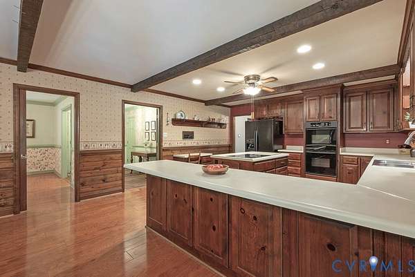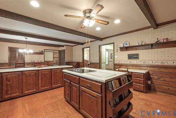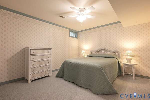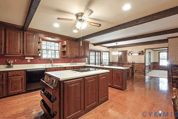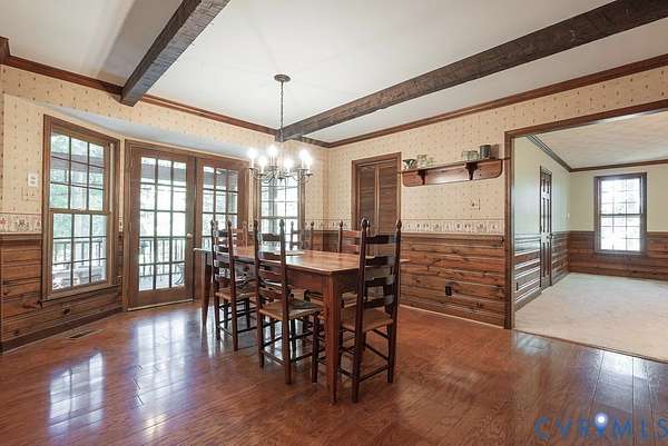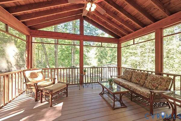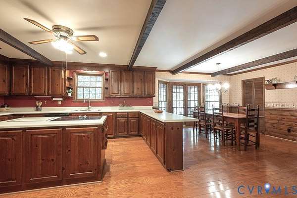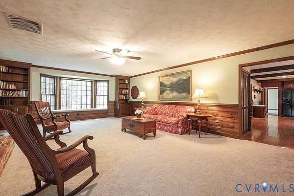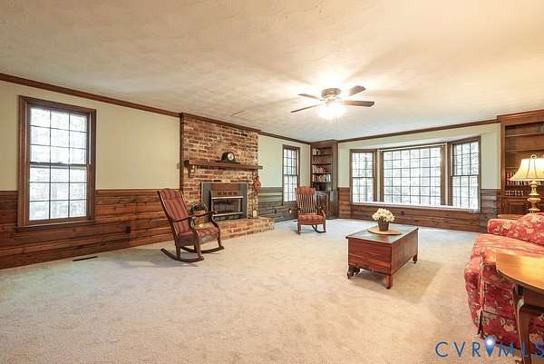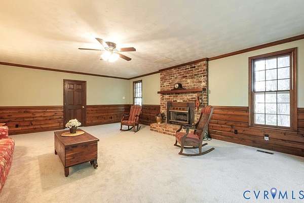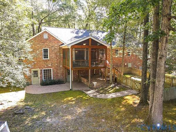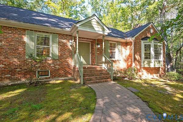Discover timeless elegance and exceptional privacy in this rare property, perfectly situated on 5+ lush acres along highly sought-after Huguenot Springs Road-just moments from The Preserve, Westchester Commons and Rt 288! A sweeping circular drive welcomes you to this solidly built and lovingly maintained All-Brick Ranch with Walkout Basement! Classic architecture meets enduring quality, awaiting your vision to make it your dream home! Stately double doors open to an inviting foyer, adorned with wide-plank hardwood flooring and refined custom millwork. To your right, a gracious Formal Dining Room is illuminated by a dazzling crystal chandelier-perfect for elegant entertaining. The heart of the home is a show-stopping Eat-in Kitchen, featuring exposed wood beams, generous center island, expansive countertops with bar seating, custom cabinetry with two pantries and recessed lighting! Designed for both everyday living and effortless hosting, this space flows seamlessly into a spectacular Vaulted Screened Porch, offering tranquil views and an elevated connection to nature. A generous Family Room invites relaxation, with an impressive center Brick Fireplace, and an oversized bay window with a window seat overlooking the grounds -ideal for gatherings, quiet reading, or cozy evenings by the fire. The Primary Suite is a serene retreat, and an additional bedroom, full bath, and large laundry/mudroom/utility room complete the first floor. Downstairs offers an Office/Library with custom built-ins, two bedrooms with a Jack-and-Jill bath, exercise/FLEX room, and a converted garage serving as a Recreation Room with a half bath. Step outside onto an impressive Paved Patio, leading to a Detached Shed, Pet Fence, and Fenced Garden Area surrounded by woodlands. This remarkable property offers a wonderful blend of rural charm and refined living, just minutes from shopping, dining, and top-rated schools. New Roof (Sept 2025) -Bosch HVAC System (2022) -Generator (2023) -Water Conditioning System -Dual Wells -Ample Parking front/back.