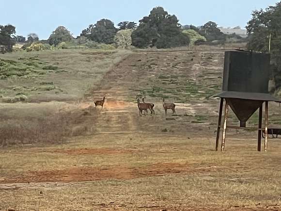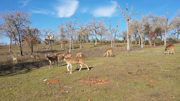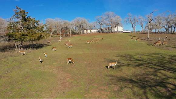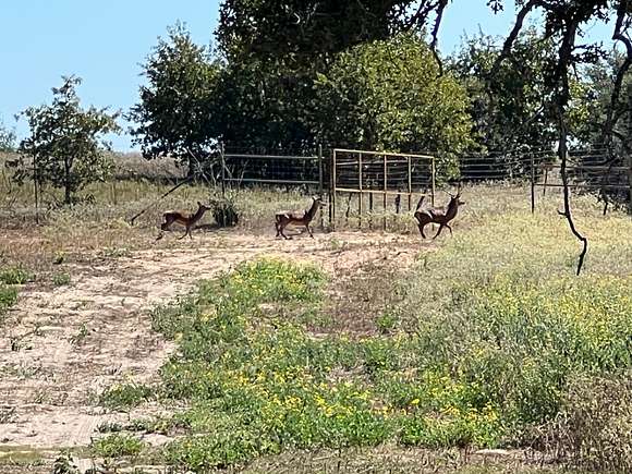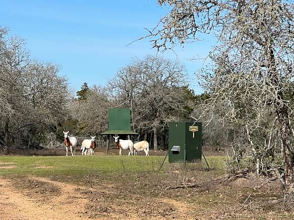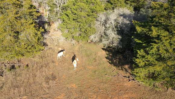 The property is fully enclosed by high fencing with predator wire, inclusive of an additional 13-acre high-fence interior trap at the northern end. It serves as a sanctuary for a diverse array of wildlife, including an estimated 150 whitetail deer, 60 axis deer, 60 blackbuck antelope, 100 red stag, 6 red sheep, and 17 scimitar oryx. Feral hogs have been eradicated. The seller maintains a modest hunting program, including selective sales, and supplements wildlife with high-protein feed, in addition to grazing on native grasses and brush.