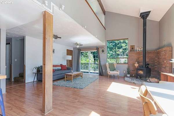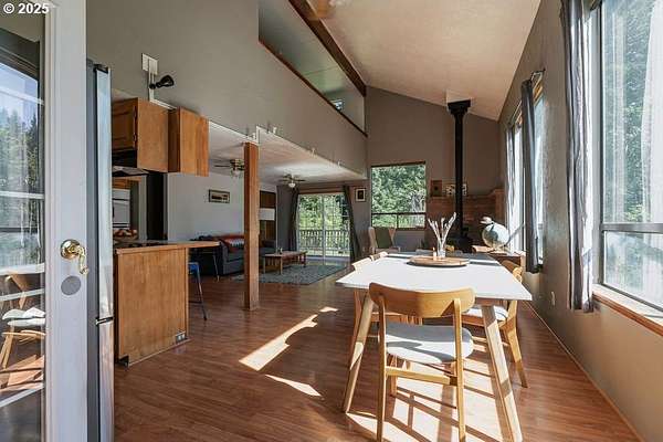Looking for a private retreat in Corbett on just over five acres with a beautiful creek running through the property? The high-ceilinged home features three levels, a new roof installed in 2022, an attached garage with an RV hookup on the side, a certified wood stove, and a back deck that is perfect for entertaining. The 16x17 primary bedroom is spacious, with an 8x11 walk-in closet. There are three bedrooms in total, along with a bonus room that can serve as an office or craft room. The property features an orchard with apple, pear, cherry, plum, and mulberry trees, a spacious 30x20 shop with a concrete foundation, and an 18x20 covered back storage area. From all of the interior windows, enjoy expansive views of the quiet, serene woodland. The home is located on a low-traffic road near the schools and access to I-84. Corbett High School was recently rated #8 in Oregon by US News and World Report. There are hiking trails on the property, and you are near the Columbia River Gorge National Scenic Area, Mt Hood, and Hood River for additional hiking and outdoor recreation.
