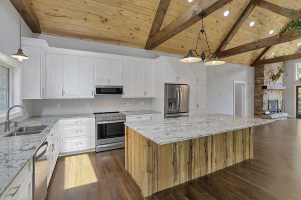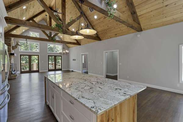 Escape to your own private retreat nestled on 49 secluded acres in the breathtaking Hocking Hills. This newly custom-built home offers the perfect blend of luxury and tranquility, ideal for those seeking a serene lifestyle or a lucrative cabin rental opportunity.Step inside to an expansive open-concept living space, where the modern kitchen takes center stage with its granite countertops and top-of-the-line finishes. The adjoining great room, with its striking cathedral ceiling and cozy fireplace, creates an inviting atmosphere perfect for relaxing or entertaining guests .The spacious master suite provides a luxurious haven with plenty of natural light and elegant design touches. The home also features a full walkout basement, offering endless possibilities for additional living space.