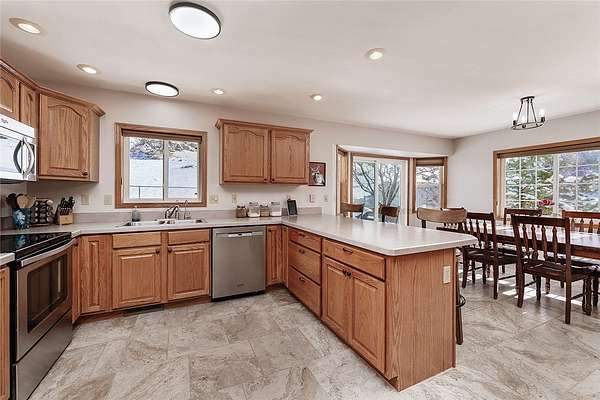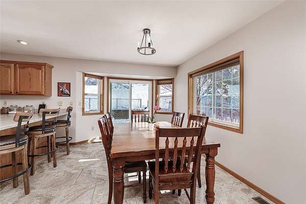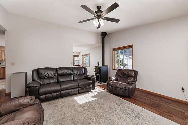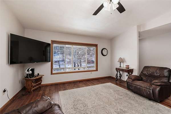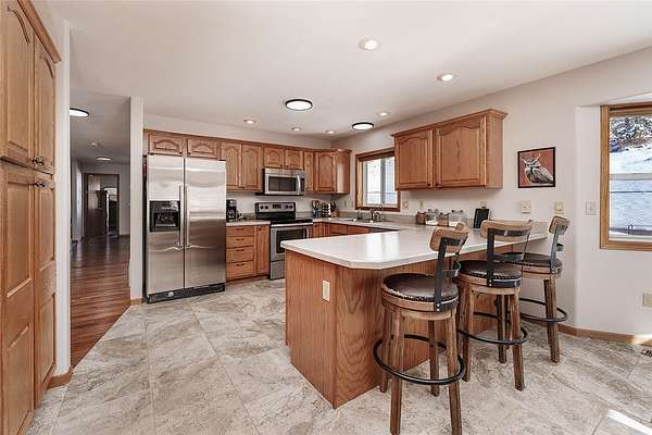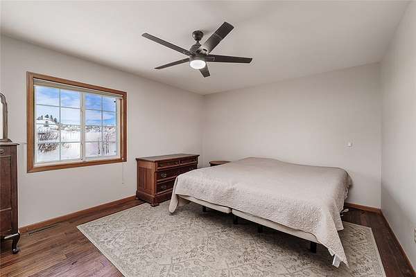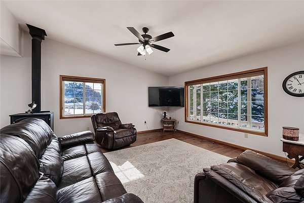 Est $4,054/moBeautiful fenced 38.94 acre parcel with a great home surrounded by bluffs and wide open spaces, offering peace, privacy and room to roam. The property backs up to State land for outstanding hunting and hiking. The home includes 5 BDR, 3 bath, new hardwood and tile floor on main level. Living room features an efficient wood stove while the lower level includes a gas fireplace. Lots of windows throughout. Downstairs bathroom has been beautifully remodeled and new light fixtures throughout the house. Attached oversized 2 car garage and a detached 16x28 garage.