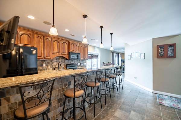 - Bookcases, Breakfast Bar, Built-In Features, Cathedral Ceiling(s), Ceiling Fan(s), Chandelier, Double Vanity, Eat-In Kitchen, Granite Counters, High Ceilings, Kitchen Island, Multi Panel Doors, Open Floorplan, Pantry, Recess Ceiling(s), Recessed Lighting, Soaking Tub, Walk-In Closet(s), Wet Bar