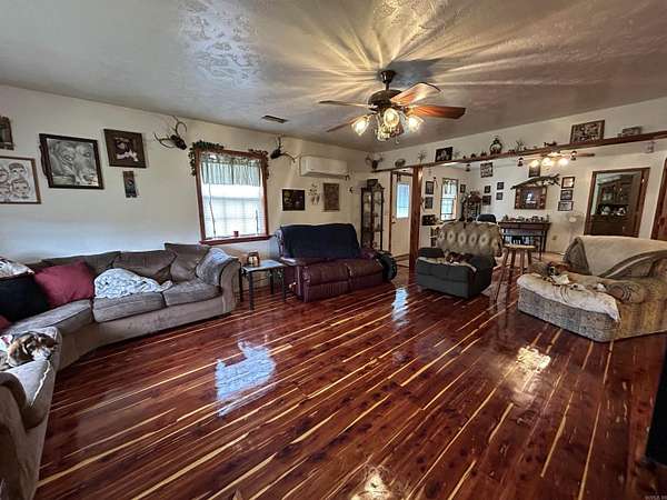 This property in Shirley/Fairfield Bay, Arkansas, is a rare opportunity for buyers seeking a blend of rural charm, modern comforts, and recreational access. With its 20 acres of cross-fenced land, mix of pasture and woods, garden area, pond, creek, and proximity to Fairfield Bay Marina and SouthFork Boat launch ramp, it caters to a variety of lifestyles, from farming to leisure. The custom-finished cedar home features new board and batten siding(2025) and new metal roof(2025), a open floor plan, and large deck add to its allure, while the wide open night sky for stargazing provides a unique, celestial experience. Potential buyers are encouraged to schedule a showing to explore this piece of Arkansas's natural beauty and make it their forever home.