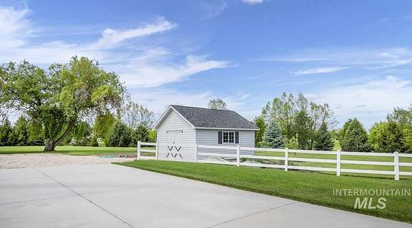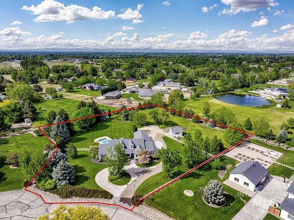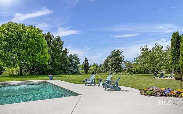 This beautifully maintained home, situated on 2.3 landscaped acres at the end of a quiet cul-de-sac, offers exceptional space, privacy, and versatility. Designed with a split bedroom floorplan, the generously sized primary, tucked at the end of the hallway, is a peaceful retreat, complete with an en suite bath featuring a jetted tub, walk-in shower, and dual vanities. Three additional main-level bedrooms provide plenty of space for family or guests, while a dedicated office creates the perfect setting for remote work or study. The kitchen is both stylish and functional, with granite countertops, stainless steel appliances, and an electric stovetop plumbed for optional gas conversion. Just off the kitchen is a comfortable living area, while the main-level family room, with a brick-surround fireplace and custom built-in shelving and cabinetry, creates a warm, inviting gathering space. The finished basement expands the home's flexibility with a spacious rec room, a fifth bedroom, and abundant storage. Outdoors, the gorgeous backyard is designed for both relaxation and entertaining, featuring a heated in-ground pool, covered patio, and a versatile 18x20 outbuilding ideal for a shed, workshop, or tack room. Fruit trees and berry bushes enhance the lush landscaping. Located in Thornwood Estates, where up to two horses, cows, or llamas are permitted in addition to household pets, this *
