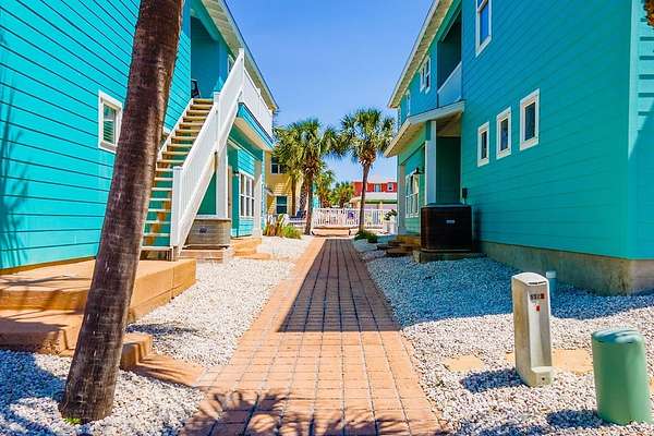 Village Walk is a gated condo community of 98 detached homes located in Port Aransas on Mustang Island. This community is just a stone's throw from the Palmilla Beach Golf Club, the Port Aransas Nature Preserve and the area's finest beaches. The entry is a lit, tree-lined boulevard plus there is plenty of spaces for guest parking. The community has a landscaped greenbelt walkway, two swimming pools and palapas plus meandering walking trails. Village Walk is zoned to allow short-term vacation rentals and homes feature fenced private yards with tropical landscaping and drip irrigation systems. This location provides something for everyone to enjoy including nearby shopping at the various boutiques, souvenir shops, and all of the restaurants as well as year round events. A set of house plans for this lot is also available.