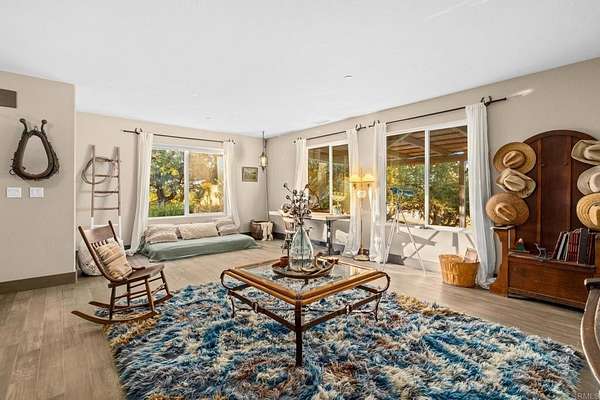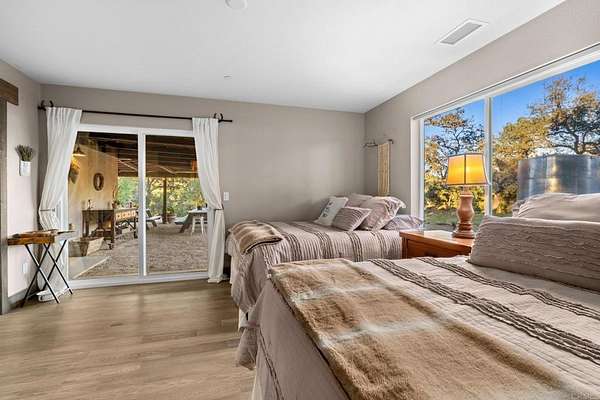 A Sacred Sanctuary of Mesa Grande -- Tucked away in the timeless hills of Mesa Grande lies Engelmann Oak Ranch, an 80-acre sanctuary that feels as if it were crafted by nature itself for peace, renewal, and inspiration. Steeped in rich history, this land whispers stories of its earliest stewards. Today, that same energy still hums beneath the ancient Engelmann oaks, some of the most rare and revered oaks in North America, their silver-green canopies swaying with the mountain breeze. ~The ranch's heart is a well-maintained three-bedroom, two-bath ranch house, thoughtfully designed to balance comfort, practicality, and connection to the land. Its welcoming interior features an open-concept kitchen and living area, where a cozy fireplace serves as a warm centerpiece, with the added convenience of central heating and air. The home has been recently refreshed with new appliances, flooring, and paint, creating a bright, move-in-ready space. Large, panoramic windows frame sweeping views, allowing natural light to fill the rooms, and a newly built expansive covered porch invites year-round indoor/outdoor living--the perfect spot to unwind while overlooking the pasture and tranquil pond. ~Here, time slows. The landscape stretches into a living canvas of rolling meadows, wildflowers, and granite outcroppings--offering several awe-inspiring vantage points over Pamo Valley, Palomar Mountain, and the legendary Rancho Guejito. Well-established trails wind through open meadows and shady groves of native oak and manzanita, leading to a serene pond and improved open air gathering space - perfect for personal camping, special occasions and outdoor recreation. Pick handfuls of wild blackberries that flourish along the trails--sun-warmed and sweet. As the sun dips below the horizon, the sky transforms into a masterpiece of color, a reminder of nature's sacred balance. ~Beyond the home, the ranch's infrastructure quietly supports the land's potential. With generous usable acreage, the property offers abundant development potential--such as an estate residence, workshops, barns, ADU or guest house--subject to investigation and approval by the County of San Diego. A private water well with new pump and 10,000-gallon storage tank sustain both home and acreage. With A72 zoning and the coveted "O" animal designator, the possibilities are vast: from a full-time working ranch or equestrian haven to a regenerative retreat or private nature preserve. ~Surrounded by the pristine landscape of Cleveland National Forest and close to the Historic Town of Julian, Santa Ysabel Preserve, Lake Henshaw and Palomar Mountain, the ranch offers both seclusion and adventure. ~This property embodies the essence of Southern California's backcountry--where vast skies, quiet mornings, and ancient oaks stand as witnesses to generations of life and legacy. Deer graze among the meadows, hawks and owls soar overhead, and the air is filled with the scent of wild buckwheat and white sage. Engelmann Oak Ranch is more than land--it is a living story, one rooted in history, harmony, and the enduring spirit of Mesa Grande.