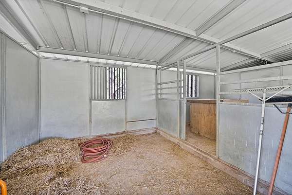 - Covered Patio/Porch, Fence, Garden(s), Lighting, Private Yard, Rain Gutters, Stable/Barn