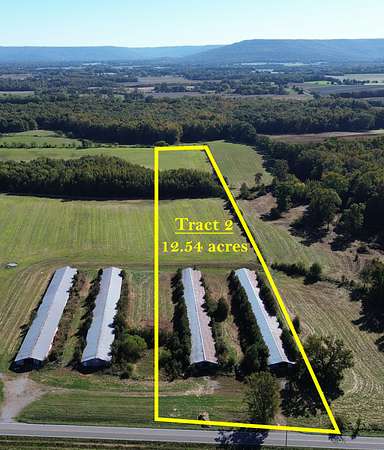 Tract 2: 12.54 acres with with a mix of cultivated property and woods. Two large chicken barns used for storage located on property. 220' frontage on Oak Grove Road.