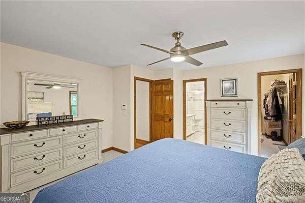 Discover the perfect blend of comfort, charm, and country living in this beautifully maintained 3-bedroom, 3-bathroom ranch situated on 3.85 serene acres just minutes from downtown Holly Springs and Canton. A welcoming front porch invites you in, while the back deck offers peaceful views of your private, fenced backyard. Inside, you'll find hardwood floors, cozy carpeted bedrooms, walk-in closets, and updated bathrooms. The spacious kitchen features a walk-in pantry and flows into a large laundry room for added convenience. The finished basement provides versatile living space, and the 2-car garage ensures ample storage. Outdoor enthusiasts looking for the perfect Hobby Farm will love the small barn, horse stable, chicken house, cleared pasture, and natural stream. Enjoy walking trails on your property with access to paved paths leading to a local park with a playground and other amenities. This property combines rural tranquility with proximity to excellent schools, shopping, interstates, and all that Holly Springs and Canton have to offer. Don't miss out on this amazing opportunity!