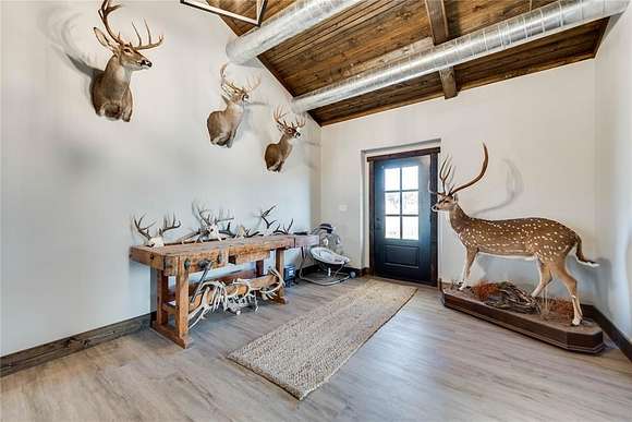 The ranch perimeter is high fenced without any cross fencing in the pastures. The ranch has a stunning 2,500 square feet house barndo with an amazing finish out. The house is 4 bed, 4 baths with attached covered carport and covered back patio which extends the length of the house. There is an outdoor cantina which is perfect for entertaining friends, family, or clients. The cantina is complete with a bar top and all the amenities needed to spend time after the hunt! An outdoor concrete formed swimming pool is perfect for those hot afternoons or cool evenings while waiting for the next hunt. There is a 3-sided equipment barn perfect for keeping all your equipment out of the elements. A cleaning rack, game cooler, and processing station are all in place. A new 1+- acre stock tank was recently finished being built and currently being filled with water. This stock tank was professionally build and sealed properly to hold water. Three soft release pens are setup behind the barn. Stands and feeders are all premium quality including Texas Wildlife Supply Tower Blinds, Phantom Ground Blinds, Ranch King Feeders, and more. This is a true turnkey, show up and hunt property ready for its next owner! The ranch has an impressive herd of improved genetic Whitetail and multiple Exotics. The animals on the property include the following: Whitetail, Blackbuck, Fallow, Axis, Red Stag, Nilgai, Zebra, Scimitar Oryx, Impala, Dama Gazelle, Springbok.