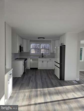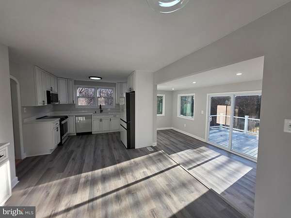 Est $2,353/moCompletely renovated. Better than new. New custom ceramic tile work in bathrooms by Santos. Kitchen has new Sunny wood cabinets. New quartz Calcutta Gray counter tops. Kitchen has stainless steel Samsung Bespoke appliances: slide in range, French door refrigerator with dual ice and water, slide in range, built in microwave and wine cooler New large Trex deck off kitchen. New red oak hardwood floor on main level. New carpet in bedrooms. New vinyl plank flooring on lower live and enclosed porch. New plumbing fixtures throughout. Over 3 acres, detached garage and carports.