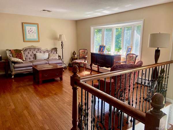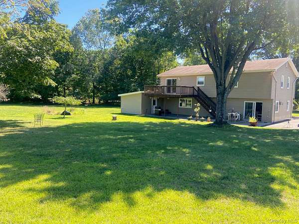 Spacious and well appointed extended bilevel on beautiful level acre backing up to a beaucolic farm where orchards and gardens abound. This home features 5 bedrooms and 3 baths, beautiful light filled living, dining and kitchen area with a large deck overlooking long vistas of green pastures. Three bedrooms with two baths on main floor with an additional two bedrooms, bath, family room, laundry and second kitchen downstairs, with walk-out access to a patio and large yard. Detached 2 car garage, large driveway for many vehicles, and additional outbuilding with second laundry and stoarage or office space. High on the hill of Chestnut Ridge this house feels like it is in the country, yet it is an easy ride to all major highways, buses, trains and main stream shopping. a must see!