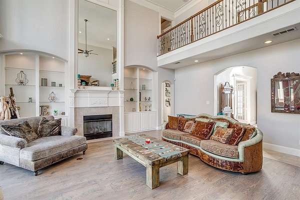 A Northwest Tarrant landmark, this home is perched high on a hill affording incredible views all the way to downtown Fort Worth. Including nearly 4.5 acres with pond, this luxurious 4,757-sq-ft custom home offers an exceptional blend of elegance and comfort, featuring a sparkling inground pool with spa, private guest quarters, and ample space for pets. Prime LOCATION, LOCATION, LOCATION, in the heart of Alliance with quick access to literally EVERYTHING. If you are looking for THE HOME that everyone knows, this home is for you!!! Guests are greeted with an impressive entryway, towering ceilings, and a grand staircase, ushering them into the spacious family room with its impressive wall of windows overlooking the private courtyard and pool, flooding the home with natural light. This Entertainer's dream offers 2 large living spaces, an upstairs game room & wet bar with plenty of room for a pool table, and a separate media room! The chef's kitchen boasts a large island with 6-burner gas cooktop, granite countertops, top-of-the-line custom-matched appliances, farmhouse sink, double ovens, and an inviting breakfast bar. The recently remodeled home's other notable features include rich hardwood and oversized tile flooring, popular neutral tones, generously sized bedrooms with abundant storage & extensive built-ins perfect for displaying artwork and more. The primary suite exudes warmth with its own fireplace and a spa-inspired bath featuring a soaking tub, separate shower, dual sinks, and a spacious walk-in closet. Need space for a Parent, Adult Children, or Home Business-Office? The 1,200 sqft private guest home features its own kitchen, living room, dining area, two bedrooms, and two bathrooms with laundry space. This property is set up perfectly to build your shop at the back corner with its own separate entry off of Harmon Road for all your toys, RV, or business equipment. There is also a Potential Future commercial opportunity as well!! Truly An Absolute Must SEE!