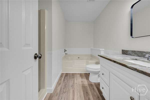- Bathtub, Ceiling Fan(s), Country Kitchen, Fireplace, Main Level Primary, Primary Suite, Separate Shower, Vanity