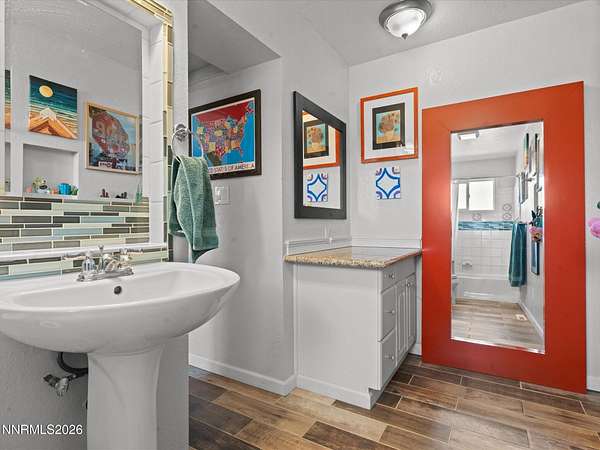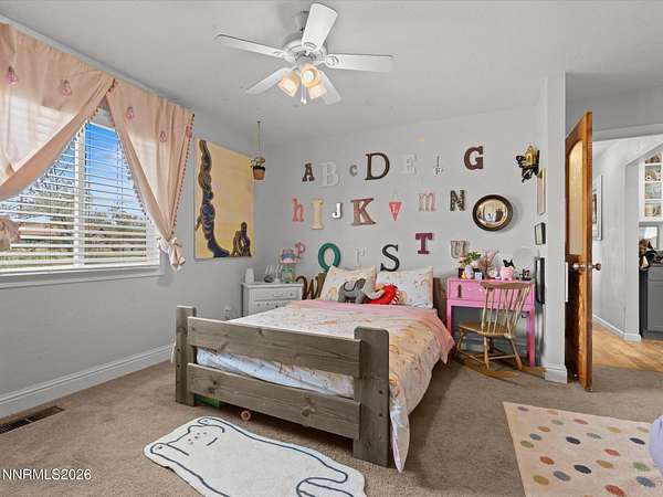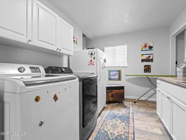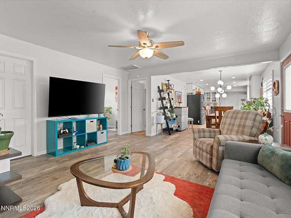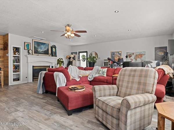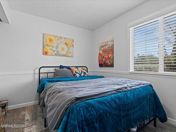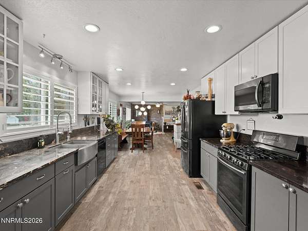 Stunningly updated home with exceptional indoor comfort and standout outdoor entertaining spaces. Tucked away at the end of a quiet road off Johnson Lane, this property offers both privacy and convenience. Inside, you're welcomed by a generous family room centered around a cozy fireplace perfect for relaxing evenings. Wood-toned LVP flooring flows seamlessly through all main living areas, adding warmth to the home. The kitchen has been refreshed with newer cabinetry, sleek granite countertops, and stainless steel appliances. A movable island adds flexibility, while a spacious walk-in pantry and separate butler's pantry provide abundant storage for all your culinary needs. A charming wood stove enhances the space, and bold accent doors bring in a touch of character and warmth. The primary suite is roomy and inviting, featuring direct access to a private, covered patio your own peaceful retreat. Just beyond, a hot tub sits tucked beneath mature trees, creating a serene, peaceful setting. Step outside and discover a truly unique backyard designed for entertaining. A custom-built outdoor bar overlooks a lush lawn and is complemented by an outdoor refrigerator and handcrafted high-top tables, all sheltered under a corrugated metal roof. There's also an expansive paver patio with mountain peak views , offering additional space for gatherings in any season. Surrounded by mature trees offering plenty of room for animals on this 2.24 acres whether horses, chickens, or simply want space for pets to roam. A massive detached four-car shop/garage with RV hookup adds even more value and versatility. This one-of-a-kind property blends comfort, style, and functionality ideal for both everyday living and memorable entertaining.