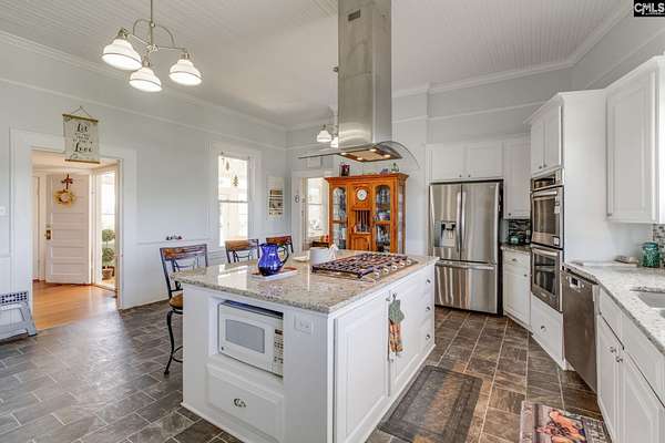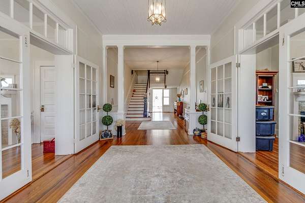Experience the perfect blend of history, elegance, and country living in this one-of-a-kind Bishopville estate. Nestled on nearly 4 acres of rolling countryside, with a 5 bedroom, 2.5 bath home. This expansive estate offers an exceptional lifestyle with unlimited residential or commercial potential including the workshop of your dreams. From the moment you arrive, the home's classic symmetry, architectural integrity and wraparound porches make a striking first impression. Inside, the refined craftsmanship is apparent with soaring 11-foot ceilings, heart-of-pine floors, dazzling chandeliers and detailed 4-10 inch crown molding that showcase the home's historic charm. The home boasts 7 fireplace mantles, 1 gas fireplace in 1st floor suite, 1 stunning Charleston brick hearth ( wood burning) that add warmth and character throughout. The custom designed chef's kitchen brings modern times, to a historic home, with stainless steel appliances, granite counters, a central gas range, dual ovens, custom cabinetry, and a charming picture window framing sweeping views of the property. Just off the kitchen, a formal dining room, with a swinging door, provides an elegant space. A sunroom stretches along the back of the home, filling the room with natural light and offering the ideal spot to begin and end each day. Outdoors, a 40' x 50' detached shop (concrete, water, separate electric) provides excellent space for business use, creative endeavors, or storage. The original barn adds charm and opportunity for future restoration. The wrap around porches were designed for relaxing or year-round entertaining and invite you to enjoy sunrise to sunset and moonlit nights. The location and surrounding outdoor adventures allows you to take in the natural beauty that defines country living. This expansive estate brings an exceptional lifestyle with unlimited residential, or even commercial, potential. Whether you're envisioning a sparkling pool and pool house, a hobby farm, or the workshop of your dreams, the possibilities here are truly endless. Schedule your private showing today and experience the extraordinary lifestyle that awaits at 2530 St Charles Rd. Disclaimer: CMLS has