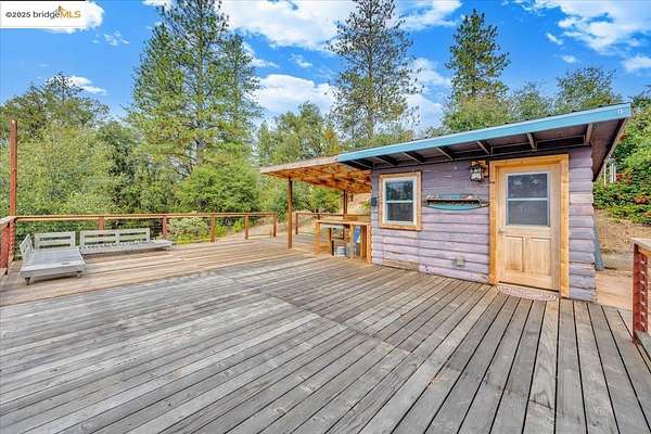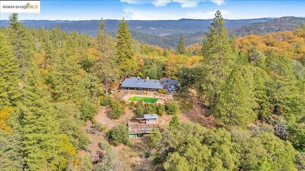Discover Hummingbird Sky Island, a secluded 160-acre retreat completely surrounded by Stanislaus National Forest. Formerly the Kayumari Sanctuary, this historic property offers total privacy, expansive meadows, conifer and oak forests, and abundant wildlife including eagles, deer, foxes, and more. Ideal for a multi-family compound, wellness center, or yoga retreat. The property features a 2,550+/- sq ft main home with 5 bedrooms, 2 baths, a 40,000-gallon pool, casita, sauna, and workshop. A 1,350+/- sq ft gate house provides 3 bedrooms and 1 bath. Additional structures include a ranch-style building, dorm with 2 baths, office, multiple outbuildings, and a rustic 40' x 50' barn. Retreat amenities include 9 yurts (with 13 sites), extensive gardens, a seasonal creek and pond, and sweeping natural vistas. Fully off-grid, the property is powered by solar with diesel generator backup and offers two productive wells A rare sanctuary with deep history, natural beauty, and endless potential in the heart of the Sierra Nevada.