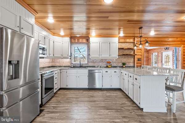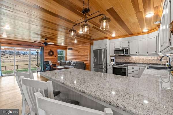 Seller reviewing offers 6pm Sunday, January 25, 2026 Rarely available working livestock farmette, beautifully situated on 10+/- private, serene acres offering unmatched tranquility and the desirable lifestyle choice of rural living. This stunning log home is surrounded by rolling landscape, multiple fenced pastures, outbuildings, and peaceful natural beauty-including a stream running along one border of the property-creating a truly private retreat in sought-after Westminster. From the deck, step into a breathtaking sitting room/entryway with cathedral ceilings, LVP flooring, and custom built-ins. The home opens into an impressive great room featuring a gourmet eat-in kitchen with updated granite countertops, stainless steel appliances, breakfast bar seating for four, custom tile backsplash, and pendant lighting. The kitchen flows effortlessly into the family room accented by warm wood ceilings and walls, LVP flooring, and an oversized glass slider leading to the extended covered porch overlooking the tranquil setting. The main level hosts three generous bedrooms, including a primary suite with walk-in closet and charming custom barn-door shutters, along with a full hall bathroom. A major highlight of the home is the main-level in-law quarters, complete with its own living area/kitchenette, updated flooring, separate bedroom with walk-in closet, full bathroom, two separate entrances, and its own dedicated updated HVAC system-ideal for multi-generational living, guests, or private workspace needs. The finished lower level enhances functionality with LVP flooring throughout, two additional bedrooms, a game room, spacious recreation room with electric fireplace, laundry room, and abundant storage. Outdoors, the property continues to stand out with multiple fenced pastures, a barn with multiple stalls, and a chicken coop-ready for horses, goats, chickens, or expanded agricultural use. The oversized 47x28 detached three-car garage features a workshop area, three overhead doors with openers, mounted electric ceiling heat, and a separate breaker panel. As for future expansion, the possibilities are endless with the bonus space of 1,300 +/- finished square feet above the garage. With scenic views, exceptional privacy, and versatile agricultural potential, this gorgeous farmette provides an incredible opportunity to embrace peaceful, rural living while enjoying the functionality of a true working livestock farmette. PLEASE NOTE: All outbuildings are to convey as-is. PLEASE DO NOT VISIT PROPERTY WITHOUT AN APPOINTMENT! Please do not open any gates, please make sure all children/ minors are supervised and accompanied by an adult during your visit. Please do not pet or approach any of the livestock.