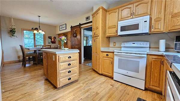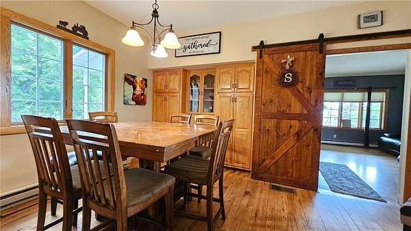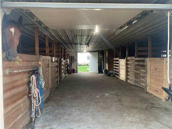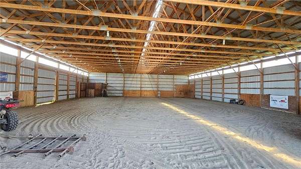 Welcome to your dream country retreat! This beautifully maintained four-bedroom, three-bath farmhouse sits on 40 acres, making it the perfect property for horse enthusiasts, hobby farmers, or anyone looking for peaceful rural living without sacrificing modern conveniences. Ride year-round in the indoor arena or train and exercise in the outdoor arena. The stables include multiple stalls, a tack room, and direct access to pastures. The pastures are equipped with an automatic waterer, making it easy to manage horses or livestock. Inside the home you will find classic farmhouse charm paired with modern updates. The kitchen and large living areas are warm and inviting, complete with hardwood floors that add a comforting touch. There is a primary suite with a private bath, three additional bedrooms, 2 additional bathrooms and a large family room that offer plenty of room for family or guests. Enjoy the panoramic views from the covered porch or sit under the stars on the maintenance free deck off the sunroom. In addition to the home and equestrian facilities, the property includes a large shop with an attached office--ideal for a home business, workshop, or extra storage. There are multiple outbuildings for hay and equipment storage, along with ample space for RV and trailer parking. Whether you're seeking a working ranch or a private country getaway, this one-of-a-kind property is ready for you to call it home.