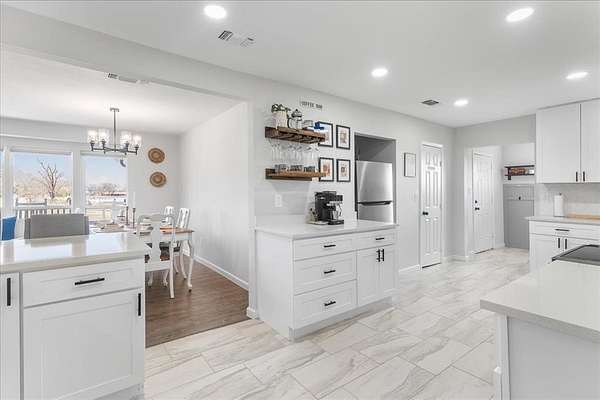 - Cedar Closet(s), Decorative Lighting, Granite Counters, Kitchen Island, Open Floorplan, Walk-In Closet(s)