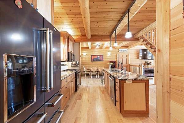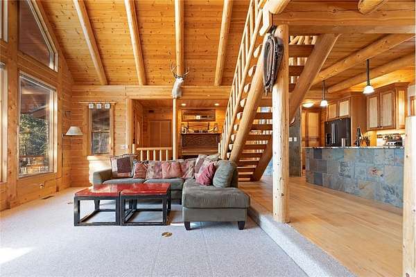 Set on 100 acres of stunning landscape, split into five 20 acre parcels. This exquisite 4-bedroom, 4-bathroom log home offers the ultimate private retreat. The main level features a sunken living room with breathtaking views and a new Lopi wood-burning stove. The updated kitchen boasts granite countertops, modern appliances (with a brand-new refrigerator installed in 2024), a walk-in pantry, a half bath, and an office or potential bedroom. A spacious bedroom with an ensuite bath, walk-in closet, and private access to the covered porch completes the main floor. Upstairs, a cozy loft area and two additional bedrooms with ensuite bathrooms await, one featuring a dedicated water heater-providing three ensuite baths in total. A new tankless water heater was added in 2023 for efficiency. The dining area opens to a covered deck and expansive patio with pavers, ideal for outdoor gatherings. A hot tub and fire pit enhance the outdoor experience. Recent upgrades include a new metal roof, owned solar panels, and 5' fencing around the front of the home.The park-like grounds feature underground power running throughout much of the property. A picturesque pond stocked with cutthroat trout, an artisan spring-fed pond, and more than 1,000 acres of state and conservation land surround the property, offering unmatched privacy and natural beauty. With a second pond and Stonewall Creek that meanders through the land, providing endless opportunities for outdoor recreation, including snowmobiling, UTV trails, and abundant fishing and hunting. A road leads directly to the fishable pond, making it easy to access all the property has to offer.