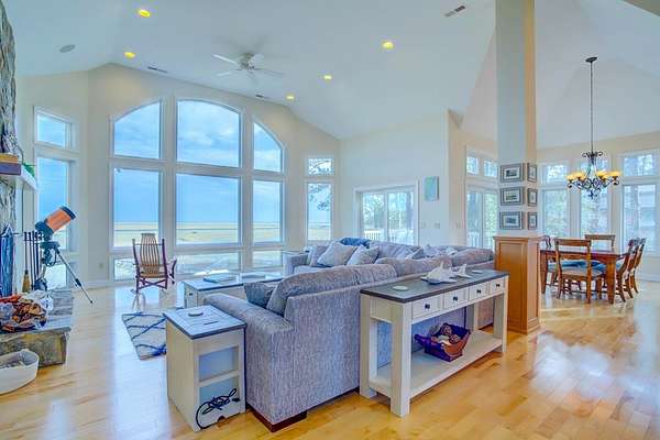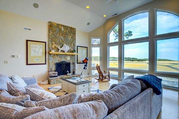 Exquisite 5BR/4.5BA waterfront retreat in a gated community--3,678 SF on 3.8 acres with sweeping ocean, marsh & creek views. Watch sunrises and rocket launches from screened porches and open decks w/ fireplace. Private pier w/ boat lift and barrier island boat shuttle. Extended pier & floating dock. Large Open floor plan with panoramic vistas. Theater, game room, multiple suites & garage for toys. New Appliances, Full home generator, Furnished & Turn-Key. High Speed Internet!! Dues only $1200/year. Enjoy the peacefulness of the setting with this well- appointed home. Even the Deer love it here. There is no need to leave when you reach this paradise. Elevator Shaft is built in. The home was just fully painted both inside and out! Its a must see Property!