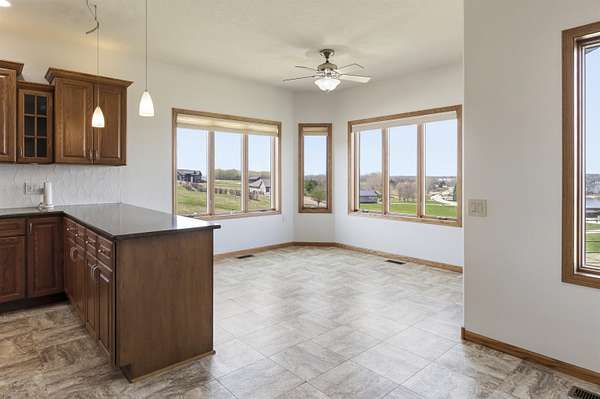Lake Access! Space to spare! Peaceful Location! Quality Finishes! It's hard to find a box that this property doesn't check. It is perched perfectly on the hillside to take full advantage of views of East Lake Okoboji! The spacious and open flow of the home affords any number of wonderful spots to rest and relax. There are three bedrooms (including an oversized master) upstairs and two in the walk-out lower level. There is an also a flex room that could be used for storage, office, or a non-conforming bedroom. There is a large deck and also a patio facing the lake. You will love the convenience of the private stairway directly from the garage to the LARGE basement storage area for lake toys. Come and take a look in person and expect to be impressed!