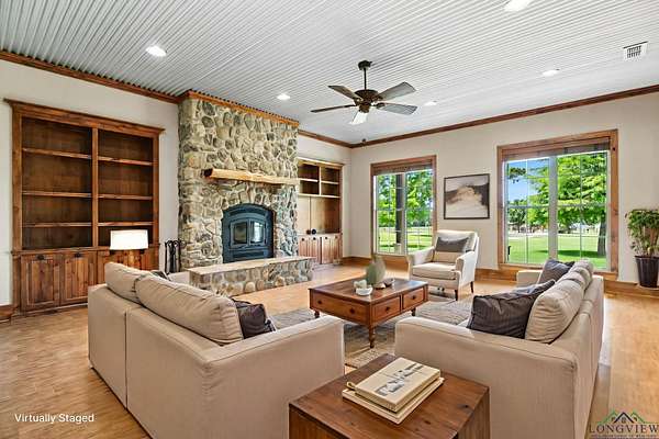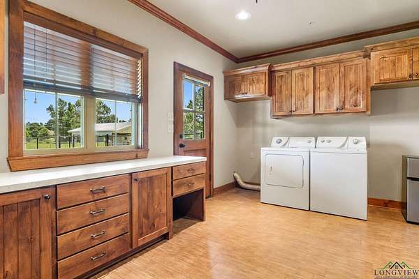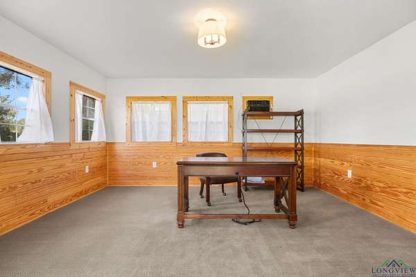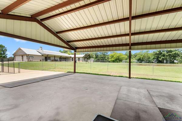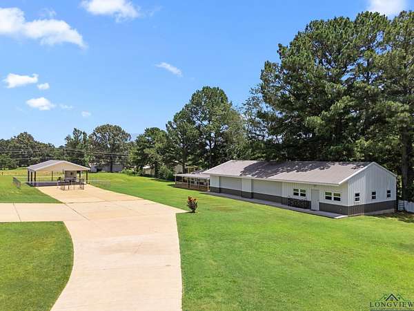 East Texas Freedom Meets Endless Possibility! Welcome to 2533 CR 186E in Kilgore -- a rare 5-acre property designed for those who crave flexibility, independence, and room to thrive. With no building restrictions, you're free to bring your vision to life -- whether it's raising animals, running a home-based business, or creating your own self-sufficient sanctuary. The charming main residence is complemented by a versatile cabin that can easily serve as additional bedrooms, guest quarters, or spacious office areas, giving you endless options for family or work needs. Animal lovers and entrepreneurs alike will appreciate the custom dog compound with an air-conditioned building, and a fully insulated, air-conditioned shop that features two bathrooms -- one with a shower, making it ideal for business operations, hobbies, large family gatherings or extended workdays. Outdoors, a fully stocked pond fed by a 500-ft well promises year-round enjoyment and sustainable living. Mature fruit trees and wide-open green spaces invite gardening, small-scale farming, or simply soaking in the peaceful East Texas atmosphere. The entire property is fenced and gated, offering privacy and security from the moment you arrive. All buildings are finished with spray foam insulation, ensuring year-round comfort and energy efficiency.