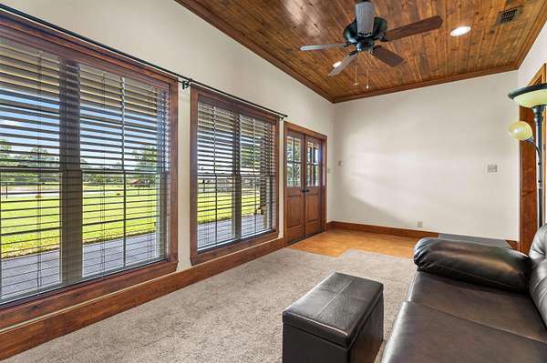 East Texas Freedom Meets Endless Possibility! Welcome to 2533 CR 186E in Kilgore — a rare 5-acre property designed for those who crave flexibility, independence, and room to thrive. With no building restrictions, you’re free to bring your vision to life — whether it’s raising animals, running a home-based business, or creating your own self-sufficient sanctuary. The charming main residence is complemented by a versatile cabin that can easily serve as additional bedrooms, guest quarters, or spacious office areas, giving you endless options for family or work needs. Animal lovers and entrepreneurs alike will appreciate the custom dog compound with an air-conditioned building, and a fully insulated, air-conditioned shop that features two bathrooms — one with a shower, making it ideal for business operations, hobbies, large family gatherings or extended workdays. Outdoors, a fully stocked pond fed by a 500-ft well promises year-round enjoyment and sustainable living. Mature fruit trees and wide-open green spaces invite gardening, small-scale farming, or simply soaking in the peaceful East Texas atmosphere. The entire property is fenced and gated, offering privacy and security from the moment you arrive. All buildings are finished with spray foam insulation, ensuring year-round comfort and energy efficiency.