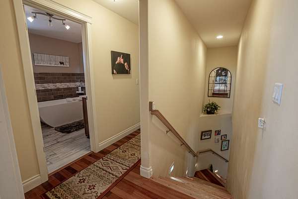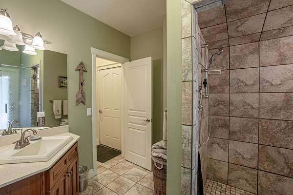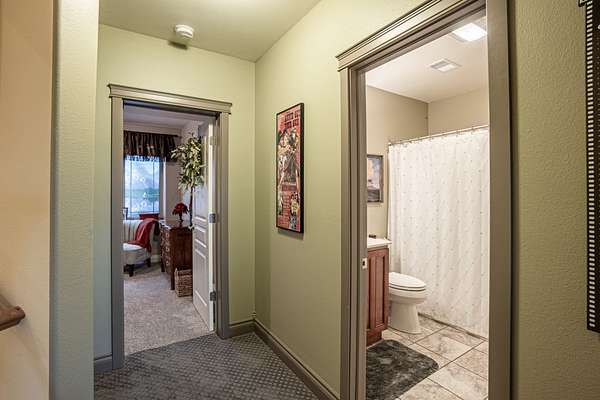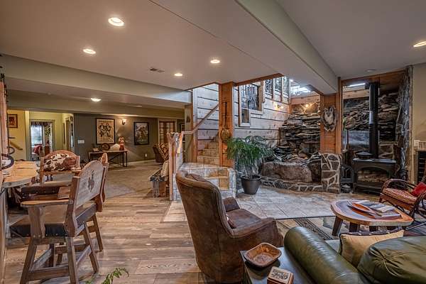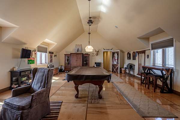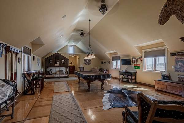 The upstairs offers additional living space with a cozy bedroom and a full bath, perfect for family or guests. A large game room provides the ideal setting for entertainment and leisure, offering plenty of space for activities and gatherings.