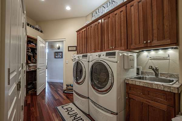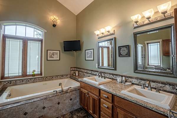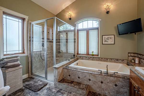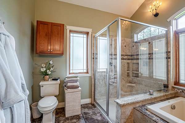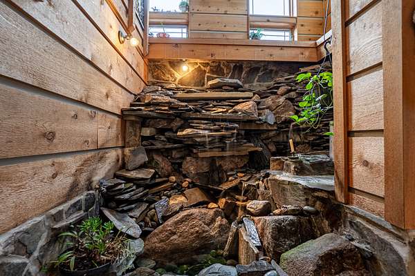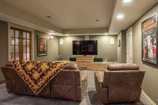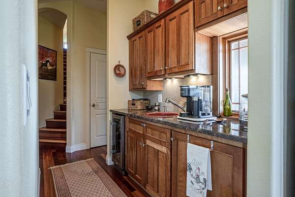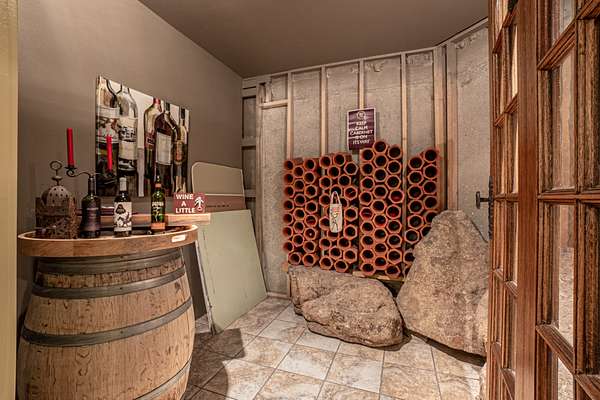 Descend to the basement and discover an entertainer’s dream. A well-appointed bar and a sophisticated wine cellar set the stage for unforgettable evenings. The expansive living area provides ample space for recreation and relaxation, while a cozy bedroom ensures guests feel right at home. Enjoy the sounds of a breathtaking water feature, with a cascading waterfall that creates a serene ambiance and ends in the living area, adding a touch of tranquility. Home is fully backed up by a Generac generator.