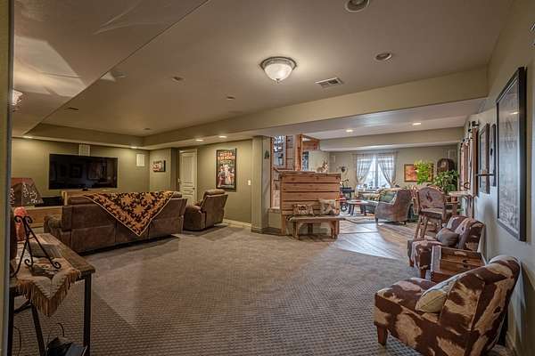The main floor boasts a master suite designed for ultimate comfort and relaxation. Enjoy the convenience of single-level living with an inviting dining room perfect for hosting family gatherings. The heart of the home is the open-concept kitchen, which flows effortlessly into the spacious living area. Here, large windows frame stunning views of the surrounding landscape, bringing the beauty of Wyoming’s outdoors inside.