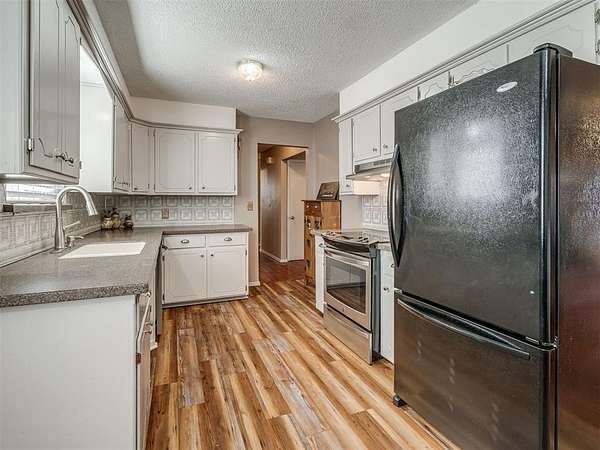 Est $1,486/mo2 bed 2 bath 2 car garage on 2 acres MOL. Metal roof, kitchen recently painted, wood look flooring in the kitchen, dining, living area, hall way and bedrooms. Updated bathrooms. Laundry is in the garage. Stand up storm shelter on back patio area. Storage building/barn for the lawn equipment. Has a fenced garden area. Choctaw Schools.