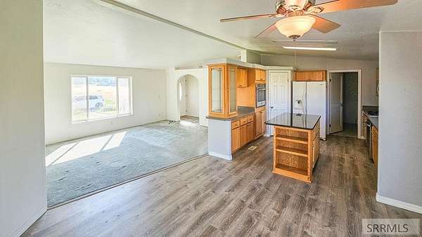 Please visit Youtube for the feature video on this property! Set in Idaho's scenic Lost River Valley just north of Arco, this single owner, incredibly maintained 3-bedroom, 2-bath manufactured home offers 1,804 sq ft of comfortable living space on 10.7 private acres. Ideal for full-time living or a peaceful rural retreat, the property features a heated, attached 3-car garage, mature trees, a manicured lawn, underground sprinklers, and a private road. Surrounded by farmland with sweeping mountain views, it also includes surface water rights, deliverable via a ditch that borders the property. For those who find 10 acres more than they need, the land offers subdivision potential for housing development. With big sky beauty and small-town charm, this location blends natural serenity with practical versatility.