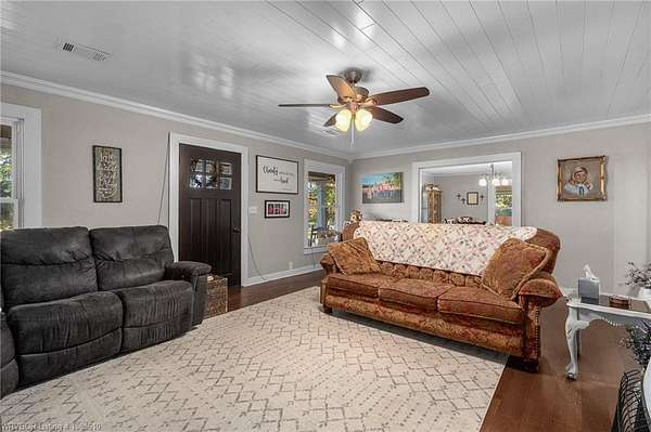 Beautifully remodeled country farmhouse on 12 acres just outside of Booneville! This 4-bedroom, 3-bath home offers 2,880 sq ft in the main house, plus a fully furnished approx. 1,200 sq ft guest house - ideal for rental income (Average $1,500 per month on Airbnb). Every inch has been updated, including a brand-new roof, HVAC system, and modern finishes throughout. Includes an updated kitchen, coffee bar, and multiple living/family rooms. The land offers the ability to garden, and is ready for livestock today! Just minutes from Booneville.