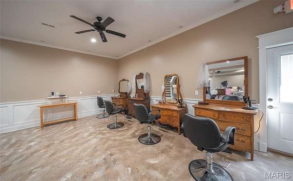 Thoughtfully designed bridal and groom spaces elevate the guest experience. The bridal suite offers four dressing stations, private bath, and garment steam area, while the groom’s loft includes a pool table, putting green, private balcony, and lounge space. A separate office with its own entrance supports on-site management or event coordination. Currently used as BNB but could also be owner/manager suite or continued rental.