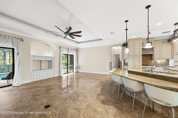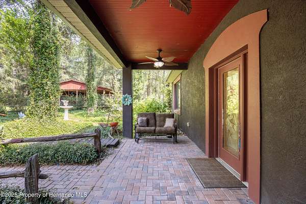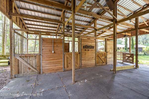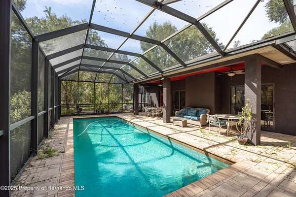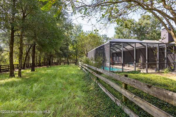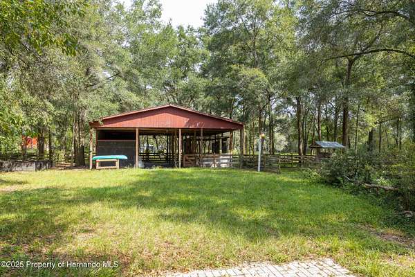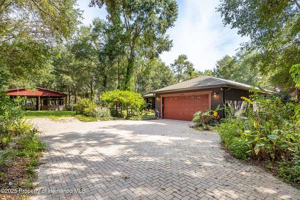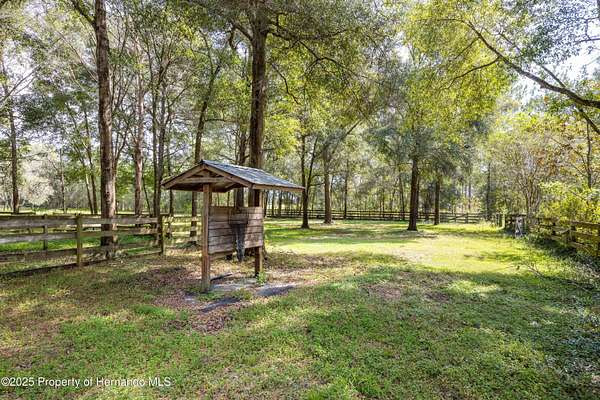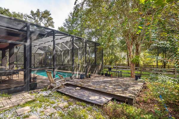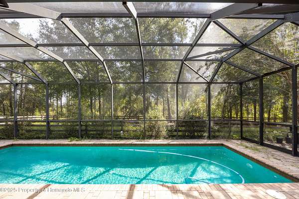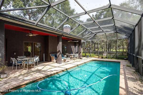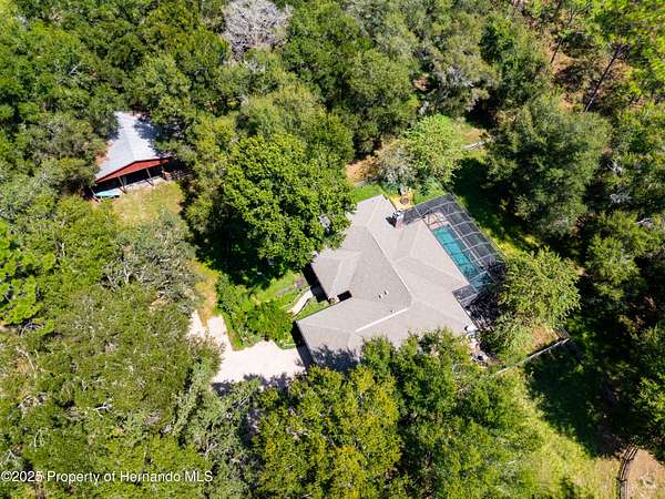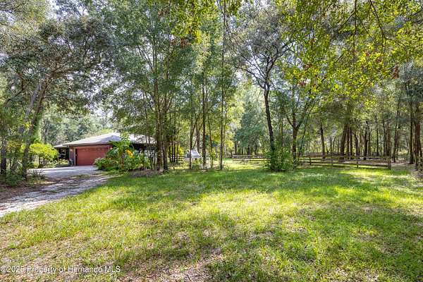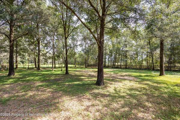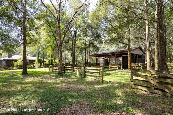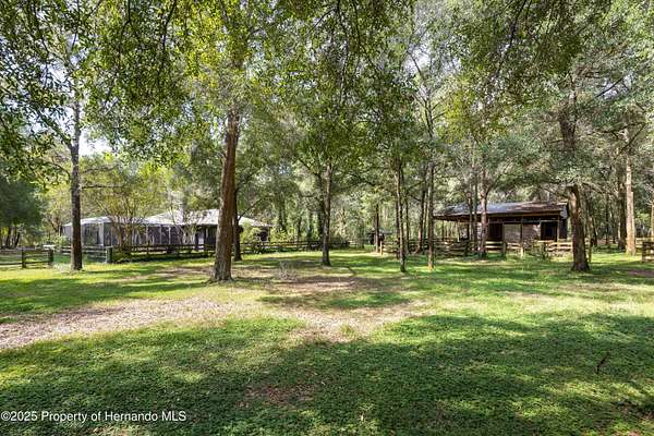 Make sure to check out the Virtual Tour for a 3D Model w/ Walkthrough, Floor Plan w/ Measurements, Video, & more! Beneath a leafy canopy of oaks, 25339 Evaline Street feels like its own private retreat, yet you're still just minutes from the heart of Brooksville. Set on 2.5 equestrian acres, this 3-bedroom, 2-bath beauty offers the perfect mix of comfort, country charm, and everyday convenience. Even better, the big-ticket updates are already handled for you: new AC, new gutters with leaf guards, a new pool enclosure, and a new pool pump-all completed within the past year-so you can move in and immediately start enjoying the good life. Inside, the home was built for both entertaining and relaxing. Marble floors glisten under natural light, crown molding and tray ceilings add a touch of elegance, and the wide-open layout flows easily from one room to the next. The kitchen will make both chefs and snackers happy, with a gas cooktop, wall oven and microwave, a cooking island, and an oversized breakfast bar that naturally becomes the gathering spot. Evenings feel extra cozy by the wood-burning fireplace, and the primary suite is a true retreat with its walk-in California closet and spa-like bath featuring dual vanities and a jetted soaking tub. Two additional bedrooms with their own tray ceilings, a generous second bath, and a huge laundry room right off the oversized garage complete the living space. Central vacuum, full appliance package (yes, washer and dryer too), and even a garage fridge for poolside beverages add the finishing touches. Step outside and the lifestyle really takes off. The screened-in pool is ready for year-round swims, while the patio invites everything from backyard barbecues to lazy Sunday afternoons. For the 4 legged family members (horses, dogs, goats, donkeys, etc), a well-appointed barn with stalls, tack room, wash rack, and a round pen are all in place, and yes, there's even a chicken coop so breakfast can literally come from your backyard. Fruit trees and bushes are already established across the property-peach, pear, plum, mulberry, lychee, cherry, bananas, pomegranate, loquat, and more-making it feel like your very own farmers market. And when you're ready to roam, the backyard gate opens to the legendary Croom Forest-20,000 acres of riding, hiking, biking, and exploring at your fingertips. Prefer dining out or shopping? Downtown Brooksville is only 10 minutes away. Need a road trip? I-75 is about 15 minutes, Weeki Wachee's mermaids are 25 minutes, and Tampa's airport and entertainment sit just under an hour away. It's rare to find a home that blends this much privacy, practicality, and Florida fun all in one package. Schedule your showing today and discover why Evaline Street might just be your perfect match.