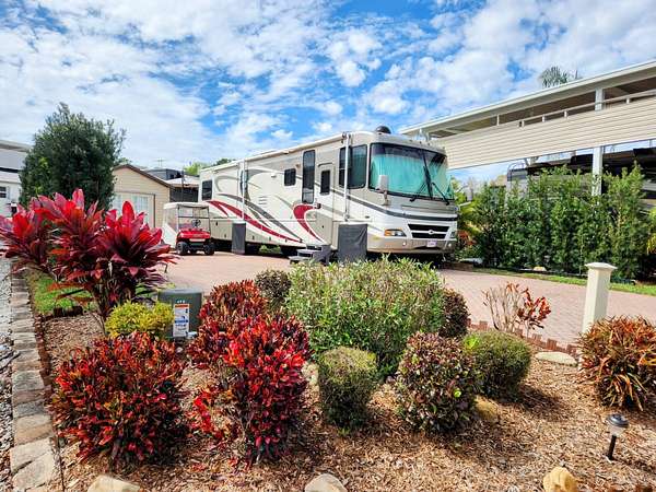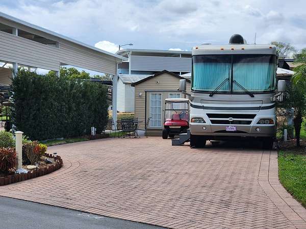 Reduced Price! Now $94,900! Lovely lot w/ she-shed, 50amp, water/sewer connections. What a sweet spot for snow-birding, storing between trips, or full-timing it, 2534 St George Drive has all you'll need for fun-in-the-sun! Located in Regal Pointe, the class A section of Deer Creek RV Resort, this lot has 50amp service and water/sewer hookups on the right side, making it a back-in lot. The paved lot measures 40' wide by 82' deep. A site-built 10'x12' shed sites at the rear of the lot. The finished shed has electricity, plumbing could easily be added. This is the perfect she-shed or grandkid hut with easy care flooring, paneled walls, window a/c unit, and TV. The double french-doors allow for storage of the requisite golf cart, tennis racquets, pickle ball paddles, or corn hole boards. 2534 St George is beautifully landscaped, serviced by irrigation. The lot is just steps away from the community clubhouse and pool. Deer Creek is a rare find in that owners' may rent either through Oats Realty, the onsite realtor, or on their own. One can rent for 1 night or 365 nights, there are no minimums. Deer Creek is an active 55+ community containing six different neighborhoods, with over 900 residences in total. We are a golf cart friendly community and offer many activities and amenities, including a large community pool, hot tub, tennis, pickle ball and shuffleboard courts, tiki bar, and the signature 18-hole executive golf course. Deer Creek has a full-time activities director who coordinates all types of activities and events from cruises to day trips to concerts, card games, water volleyball, etc. Regal Pointe has its own clubhouse with large kitchen/dining/gaming space, laundry and M/L restrooms, library/office station and workout room, plus an oversized heated pool and hot tub. Just west of the clubhouse is a shady area for dog walking. The community is well-situated with easy access to banks, shopping, restaurants and more. The Orlando international airport, the VA hospital and the area theme parks are also within a 20-40-minute drive. Call to make an appointment to tour the community and this unique property.