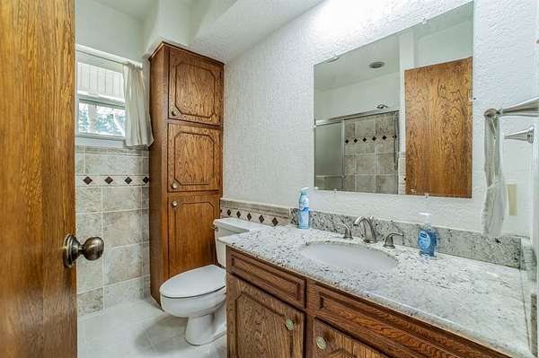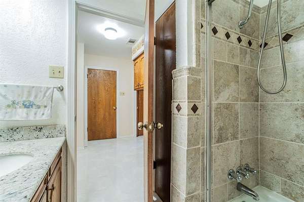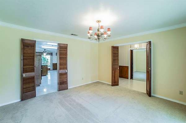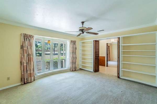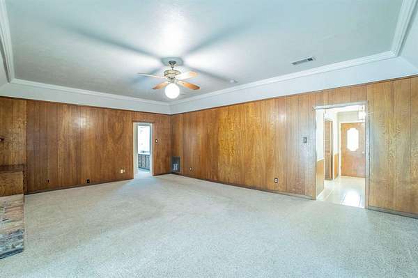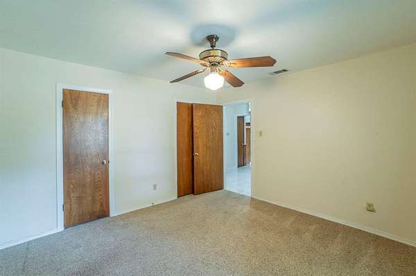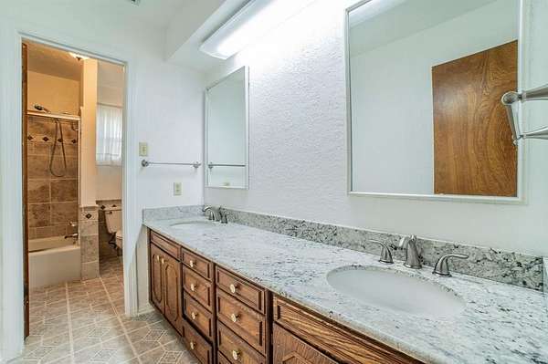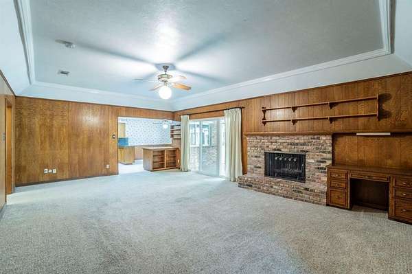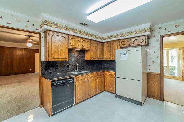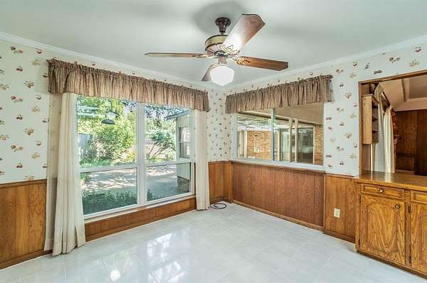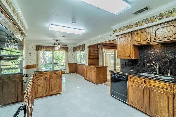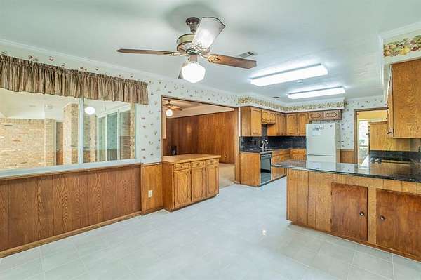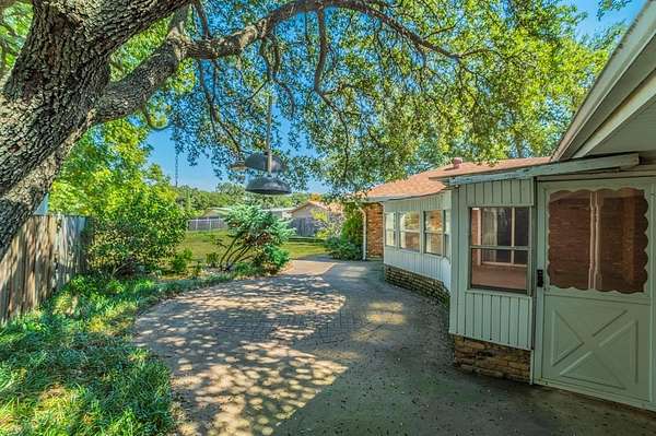 A Rare Find! Updated 1970's home on 1.61 acres in north GP! This well-maintained one-story gem has the character of the 70's with the comforts of modern day living. Step inside to find a warm and inviting layout filled with lots of natural light and plenty of space for family and friends. The formal living and dining rooms off of the tiled foyer feature large bay windows providing lots of natural light as you enter the home. The spacious living room flows from the formals and features wood paneling, built-ins and a gas start brick fireplace. At the heart of the home is the updated kitchen boasting granite countertops, tile floors, a double oven and lots of cabinet space. Whether you are preparing meals or entertaining guests this kitchen offers the amenities and workspace to make it effortless. The adjacent laundry room offers more functionality with built in cabinetry, a pantry and an attached updated full bath leading to a guest room-second primary bedroom in a separate wing of the house. Perfect for guest, in-laws or a home office. The primary bedroom displays a built-in chest of drawers, a glass door leading to the enclosed patio, 3 walk-in closets and an updated ensuite bath with granite vanity. The spacious secondary bedrooms share an updated Jack and Jill bath with dual sinks, granite vanity and tile floors. Step outside and enjoy your morning coffee on the enclosed back patio or relax in the adjacent serene courtyard. The spacious 1.61-acre lot with no back neighbors has endless possibilities. The long wrap around driveway provides extra parking including a space for a boat and or RV. Garage workshop can easily be converted back to a 2-car garage. Minutes from DFW airport and Arlington's new entertainment district. Don't miss this opportunity to own this truly special home in a well-established area right in the center of Dallas and Ft. Worth. No HOA! This is a Texas Gem!