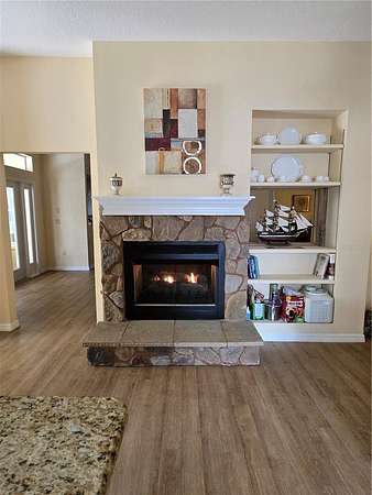 - Cathedral Ceiling(s), Ceiling Fans(s), Eat-In Kitchen, High Ceilings, Kitchen/Family Room Combo, Open Floorplan, Primary Bedroom Main Floor, Split Bedroom, Stone Counters, Thermostat, Tray Ceiling(s), Walk-In Closet(s), Window Treatments