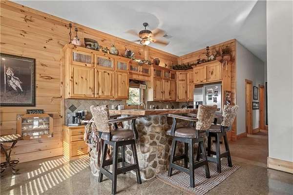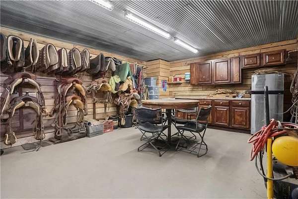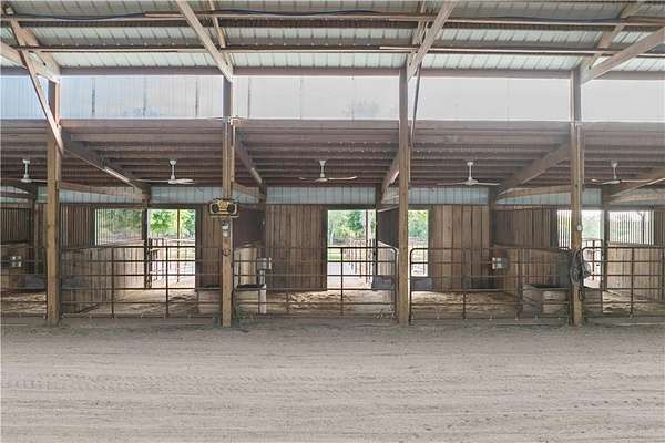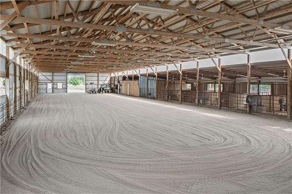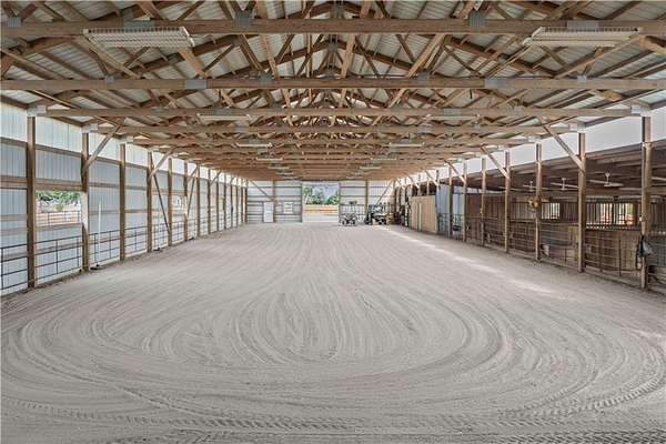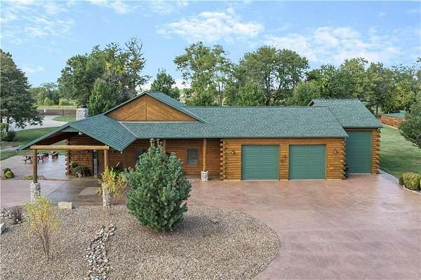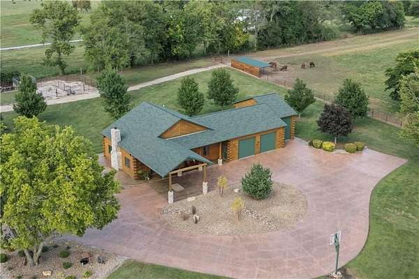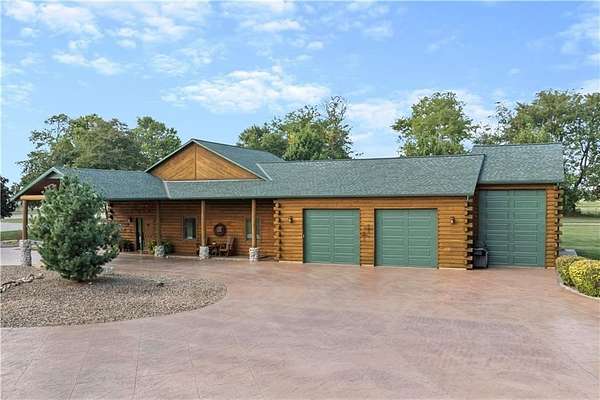 Welcome to a premier luxury equestrian estate where thoughtful design, pride of ownership, and refined country living come together seamlessly. Set on beautifully maintained acreage, this exceptional property features a meticulously cared-for log home paired with a well-equipped barn and purpose-built horse amenities-offering both comfort and functionality at the highest level. The log home showcases architectural stone detailing, cohesive cabinetry flowing through the kitchen, mudroom, and laundry, solid wood surfaces, distinctive hardware selections, and durable, low-maintenance finishes throughout. Covered porches, a stamped circular drive, and a three-car garage-including a dedicated tractor bay-create striking curb appeal while supporting everyday living. Equestrian facilities are equally impressive, with pipe-fenced pastures, shelters, automatic waterers, strategically placed hydrants, premium footing, and thoughtfully maintained grounds. Pastures have been consistently treated, fertilized, and recently reseeded with purpose-specific grasses, reflecting exceptional care and attention to detail. With trailer-ready electrical hookups, well-appointed feed and tack rooms, and close proximity to scenic riding trails, this property is designed to support both horse and owner in comfort and style. This is a rare opportunity to own a refined equestrian retreat where quality, care, and lifestyle truly stand apart.