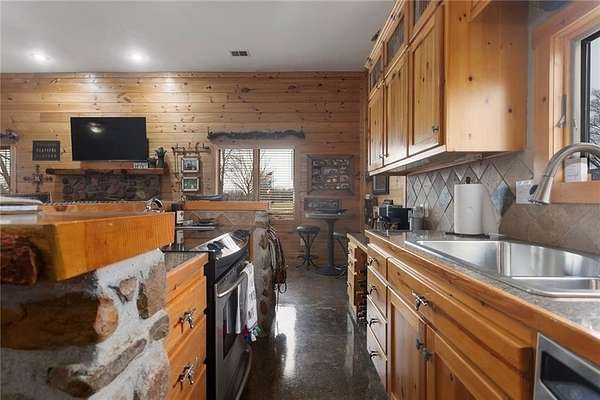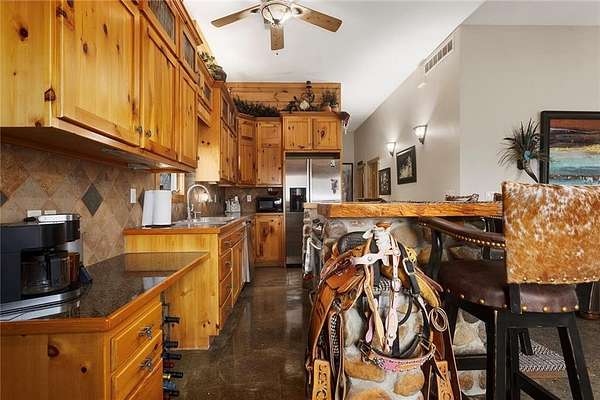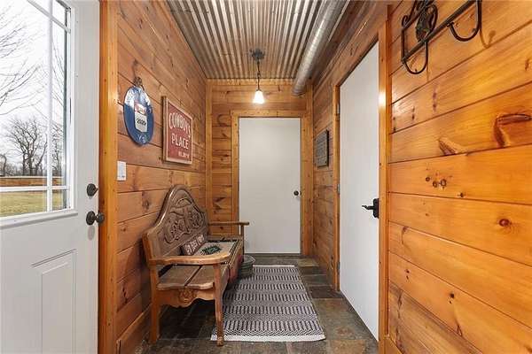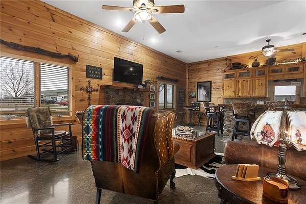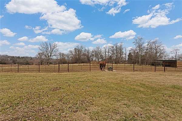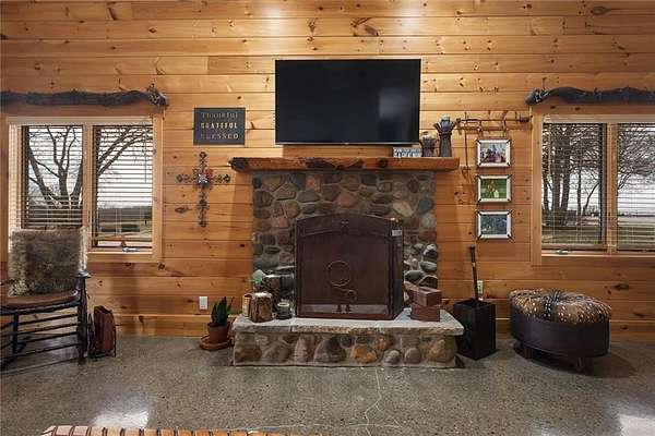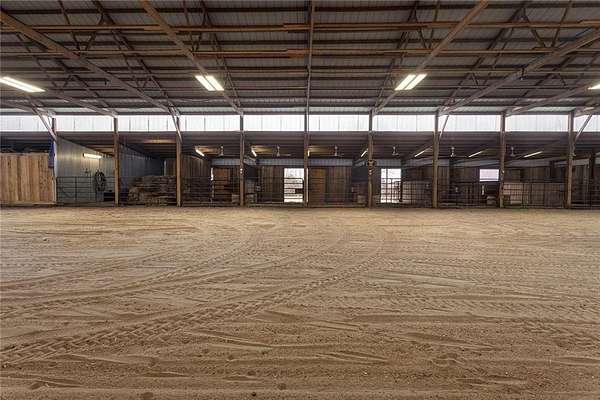 Welcome to a premier luxury equestrian estate where thoughtful design, pride of ownership, & refined country living come together. Set on beautifully maintained acreage, this exceptional property features a meticulously cared-for log home paired w/a well-equipped barn & purpose-built horse amenities offering comfort & functionality. The log home showcases architectural stone detailing, cohesive cabinetry throughout the kitchen, mudroom, & laundry, solid wood surfaces, distinctive hardware, durable low-maintenance finishes, covered porches, a stamped circular drive, & a 3-car garage including a dedicated tractor bay. The log exterior has been caulked & sealed every 3 years, & all garages feature epoxy-coated floors. Equestrian facilities include an approximately 50'x185' fully lighted indoor arena w/overhead sprinklers & a riding surface w/a solid base, 6 inches of MA2 sand, & premium black dirt footing. The outdoor arena is also lighted w/matching black dirt footing. Fencing is primarily pipe fencing, w/perimeter fencing of wired top 3 strands & smooth bottom 2 strands, enhanced by hot wire along all wire fencing. Stall gates are baby-proofed w/fully enclosed bottoms & tie-back chains, stall dividers are removable to combine 2 stalls, & one stall includes wall heaters for early foaling. Water access includes hydrants at the shelter N of the home, throughout horse areas, & at the front entrance. Automatic waterers include Ritchie units in pastures & Nelson waterers in interior stalls, w/feed & tack rooms. Pastures have been sprayed for weeds, fertilized annually, & reseeded this past fall, w/E & S pastures planted in K31 & the front pasture near the barn featuring a specialized non-fescue grass blend for broodmares requiring fescue-free grazing. Grounds are clean & clear of dead trees & weeds. Convenient 50-amp electrical hookups on the barn & near the arena provide trailer & RV connections.