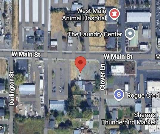 Est $1,442/moPrime commercial real estate in the heart of Medford, OR available now. Highly visible location on West Main Street, on the way towards Jacksonville. The level property is 1/3 of an acre and is zoned General Industrial. Excellent street traffic as the property fronts West Main Street, but also borders Clover Lane. Great development potential for industrial or commercial use.