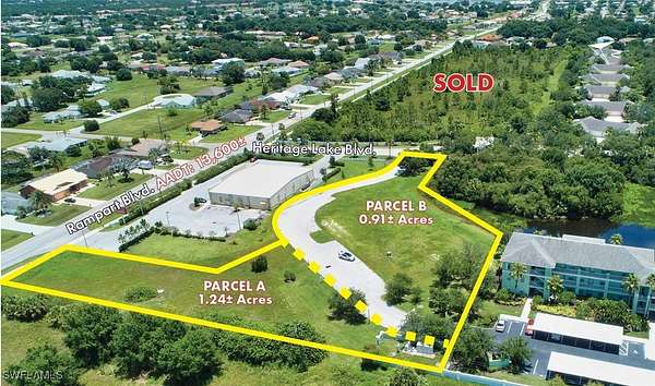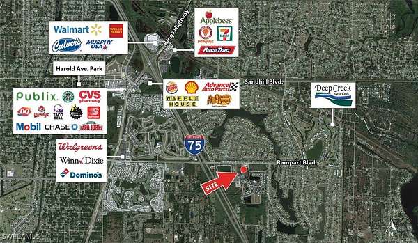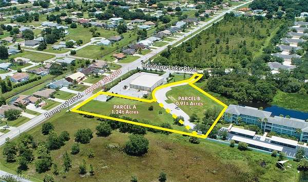 Rampart Boulevard Commercial is a rarely available commercial land development opportunity on Rampart Boulevard in Port Charlotte, Florida. This 2.15+/- acre property is exceptionally suited and zoned for a variety of commercial uses. The site is comprised of two parcels, which can be acquired collectively or individually. Parcel A spans 1.24+/- acres with 150 linear feet of frontage on Rampart Boulevard. Parcel B covers 0.91+/- acres, running adjacent to Parcel A, making this a highly coveted opportunity for development. The site features fully developed commercial pads, complete with water, sewer, and electricity already in place. With its strategic location and versatile zoning, this property presents an opportune investment for developers, business owners, and investors. - Located in a robust residential area with very limited commercial land available. - Commercial General (CG) zoning has a multitude of approved uses. - The two parcels are available for separate or combined purchase. - Located at the entrance to Heritage Lake Park, a 470 multi-family unit community. - Adjacent to the property is Deep Creek, a 3,500 acre subdivision with 7,200 single family homes. - High visibility and excellent ingress from Rampart Boulevard. Additional access through Willow Hammock Circle.