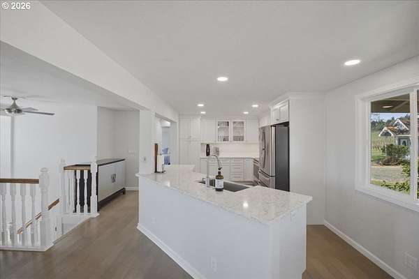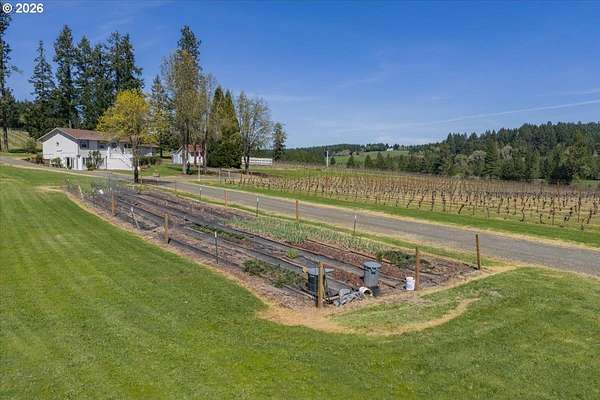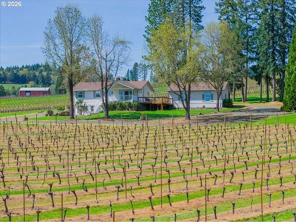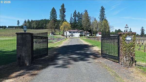 Est $6,774/moAbsolutely stunning remodel on this beautiful home perched in the heart of a 30-acre vineyard, tucked at the end of a long gated private driveway. Enjoy sweeping views over mature Pinot Gris and Pinot Noir vines and the valley below. A peaceful, private setting perfect for entertaining and gatherings. This could be a great equestrian property with plenty of usable land for horses or your other critters. Ideal location with convenient access to both Eugene and Corvallis for your occasional urban needs.