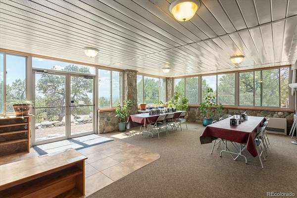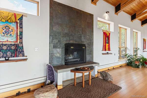 Price reduction! Rare opportunity to buy The Blazing Mountain Retreat Center. Beautifully situated in the majestic Sangre de Cristo Mountains near Crestone, an International Dark Skies Community. Offering an ideal setting for retreats, workshops, and training programs. The campus consists of three main structures: a two-level Main Building, a separate three-level Residence Hall and small cabin. The Main Hall spans 3,100 square feet and accommodates up to 120 people for meetings. This stunning space offers panoramic views of the San Luis Valley to the west and south, and breathtaking vistas of the Sangre de Cristo peaks to the east. A/V systems and soundproofing. A large covered deck on the west side extends the indoor meeting area, to blend indoor comfort with outdoor beauty. In addition, a large commercial kitchen, dining hall and hot drink station can provide the food needs of participants. Support facilities include seven auxiliary rooms used for conferences, business center, divisible break out rooms, private quarters with kitchenette and bath. A firepit and amphitheater add to the outdoor experience.The Residence hall is 200 yards from the Main Building for convenience and can accommodate 75 people comfortably. This includes single and double rooms with private baths(16) and dorm style accommodations as well. Rooms have either queen, double, twin or bunk beds. Private disabled accommodations available. Areas to congregate on all levels including a kitchenette on the main floor and extra storage. The lowest level of Residence Hall includes a special meals kitchen along with commercial laundry facility. Most furnishings stay with the property. Crestone has 2 grocery stores, post office, coffee shop and a few restaurants. An international destination itself. Secluded yet located one hour to the Alamosa CO airport for convenience. This campus has everything needed to support conferences or teachings in a serene setting. Price per square foot is unbelievable!