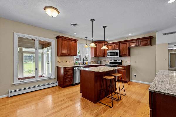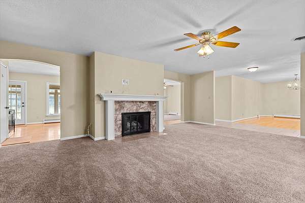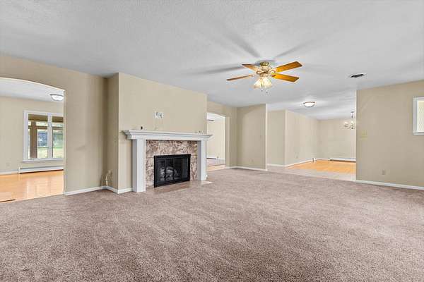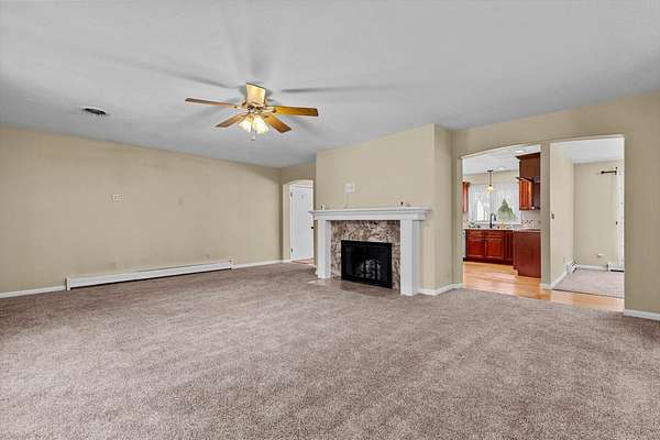 Private retreat on 1.61 wooded acres in SE Springfield! This 3,457 sq ft ranch-style home offers 3 bedrooms, 2.5 baths, and a fully finished basement--providing ample space for relaxing, entertaining, or multi-generational living.The main level features hardwood floors, a cozy living room with a brick fireplace, formal dining, and a bright sunroom with serene views of the wooded backyard. The kitchen includes abundant cabinetry and a breakfast bar with easy flow into the main living areas.Downstairs, you'll find a spacious second living area with a fireplace, a large rec/game room, and plenty of storage.Step outside to enjoy the tranquil setting with mature trees, established perennials, and a fenced backyard with space for a vegetable garden. A detached workshop in the backyard provides the perfect spot for hobbies, tools, or extra storage.Honorable mentions: New roof and gutter guards (2020) new carpet (2024) and efficient steam heat. Conveniently located near Springfield Lake with quick access to Highways 65 & 60.
